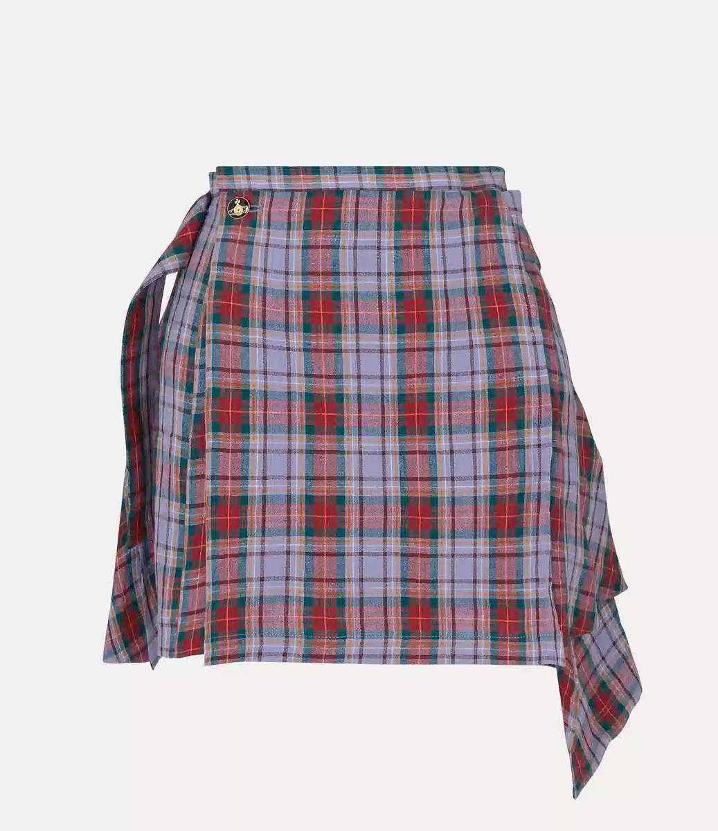 Vår Meghan-kilt har fått en ny design med säsongens djärva ”Louth Tartan”-motiv, vävt i röda, gröna och lila nyanser. Den har hög midja och knäpps med en handmålad orb-knapp. Plagget avslutas med ett dekorativt bälte som kan bäras löst eller fästas på höger sida av designen.