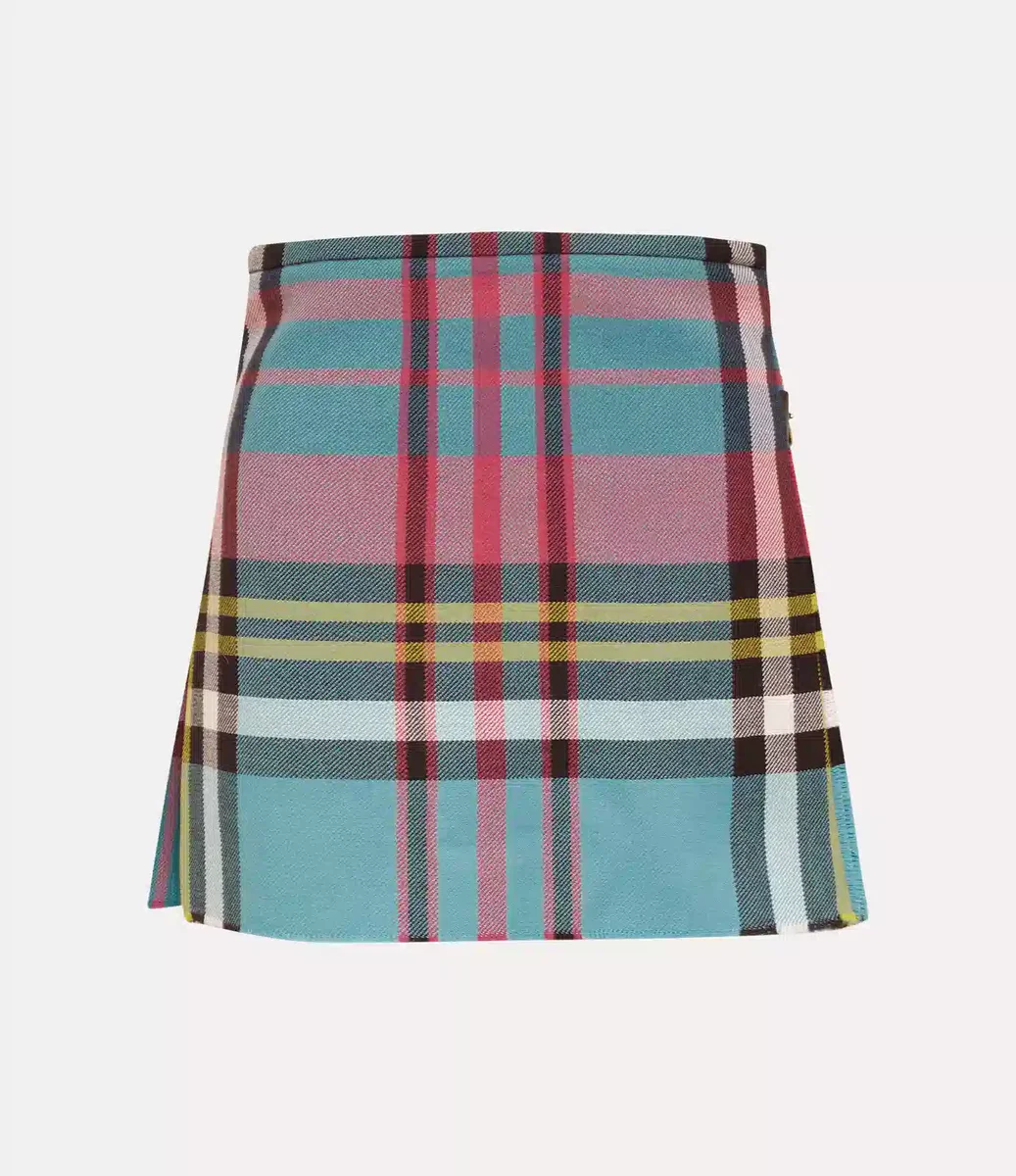 Worlds End Mini Kilt har en förstorad version av det ikoniska tartanmönstret ”MacAndreas”, som först introducerades i Vivienne Westwoods höst-vinterkollektion 1993 ”Anglomania”. Plagget har en hög midja som övergår i veckade detaljer och är utsmyckat med justerbara spännen på båda sidor.