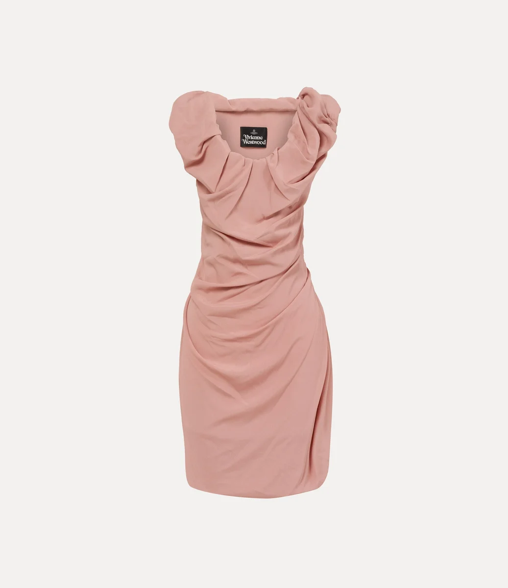 Vår tidlösa Ginnie Amber miniklänning har fått en ny design denna säsong i en mjuk silkesblandning, förhöjd med en skrynklig textur och matt finish. Plagget är designat med en rynkad, asymmetrisk halsringning och faller mjukt över överdelen och höfterna innan det övergår i en raffinerad minilängd.