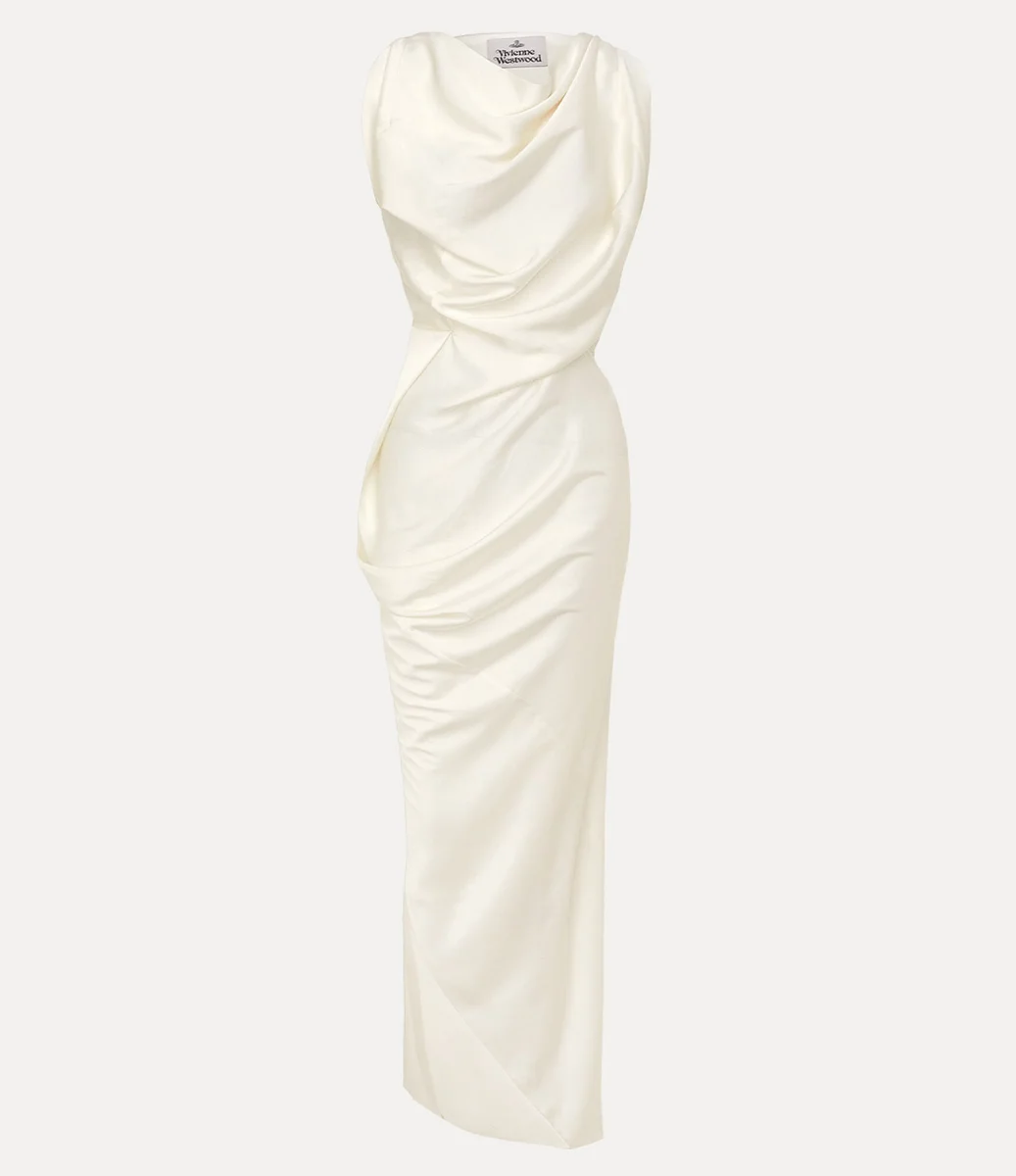 Vivienne Westwood Long Fond-klänning i polyester med draperingar vid halsringningen och midjan.