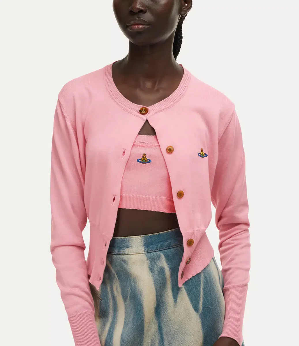 Vår Bea Cropped-kofta har fått en ny design denna säsong och erbjuds i en mjuk bomulls-kashmirblandning, prydd med ett mångfärgat broderi på vänster sida av bröstet. Plagget har en stor oval knäppning vid halsringningen, med den klassiska ”Line Orb”-motivet ingraverat.