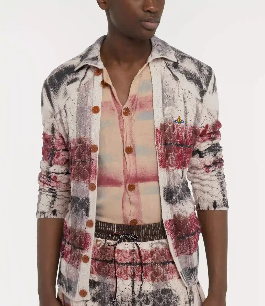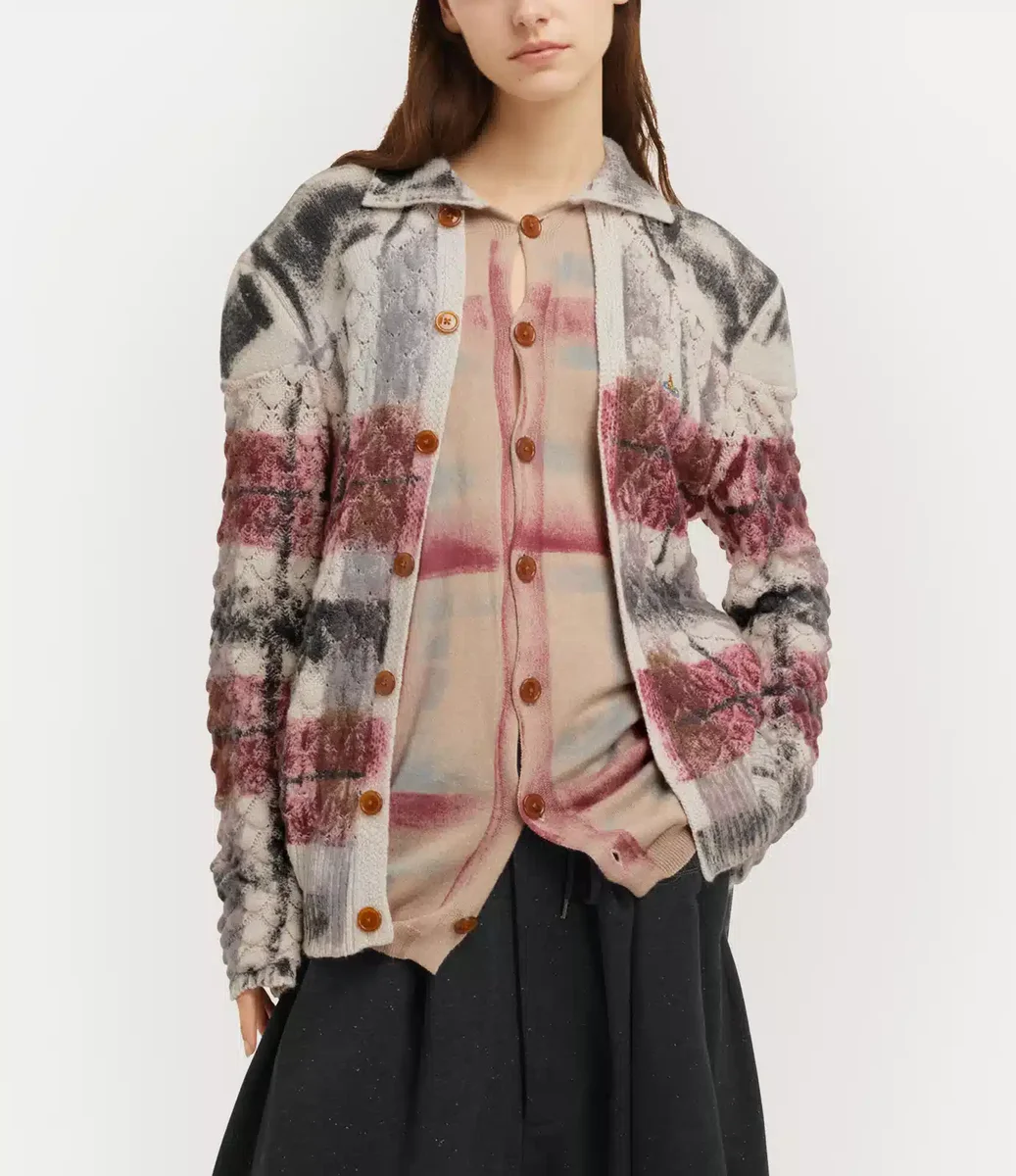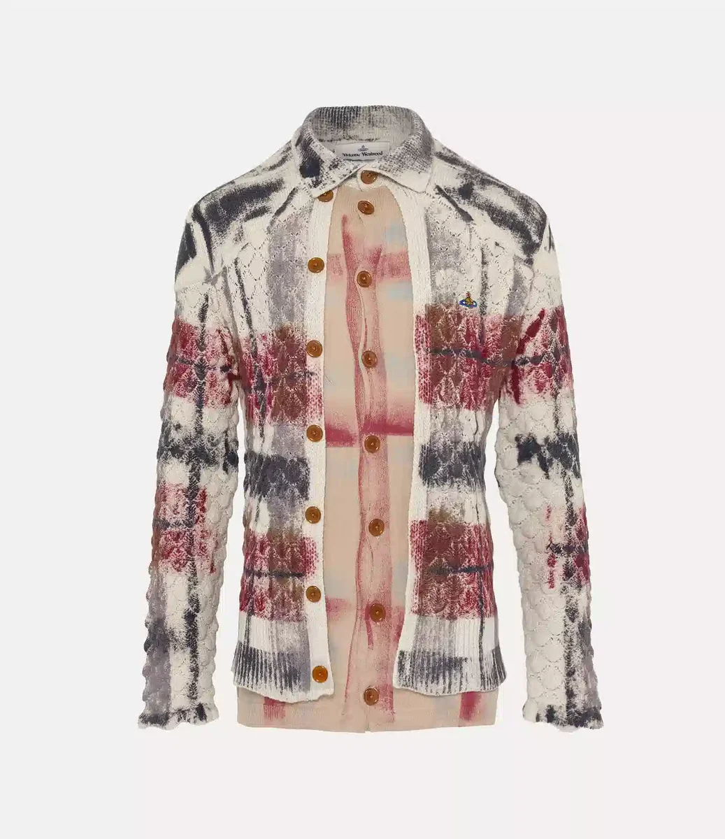 Dual Tartan-kofta är tillverkad av en ull-bomullsblandning och består av två unika lager. Det yttre lagret är stickat i en delikat diamantbladstickning, medan det inre har en platt stickning – båda med handapplicerade tartanmönster och en sliten finish.