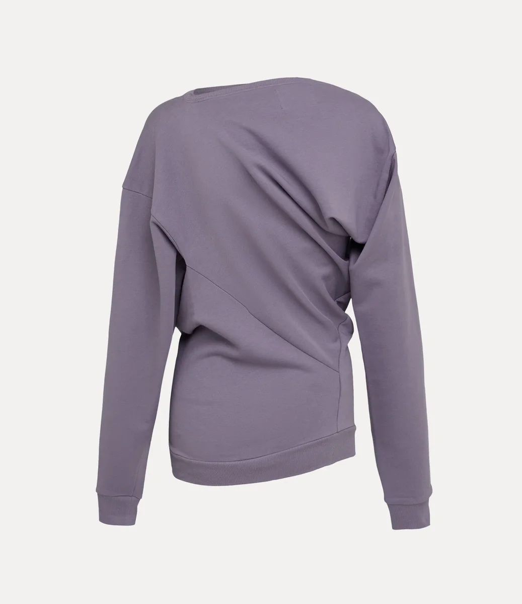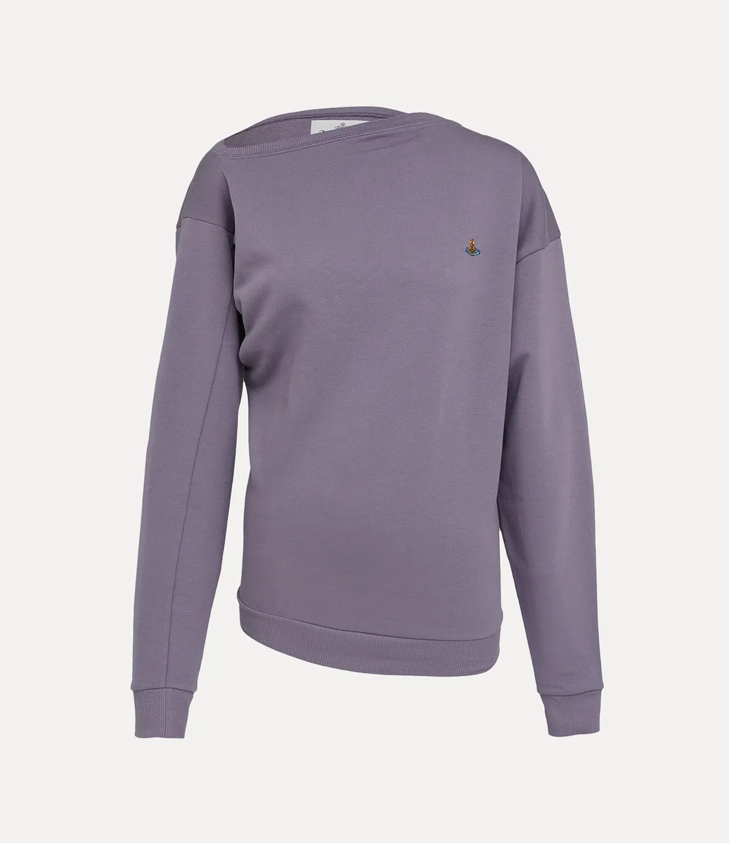 Hebo-silhuetten återvänder denna säsong i en raffinerad tröjdesign med en slash-inspirerad båthalsringning och avslappnade nedhasade axlar. Plagget har ribbade ärmslut och en subtil diagonal söm som löper över ryggen och förstärker den asymmetriska skärningen.