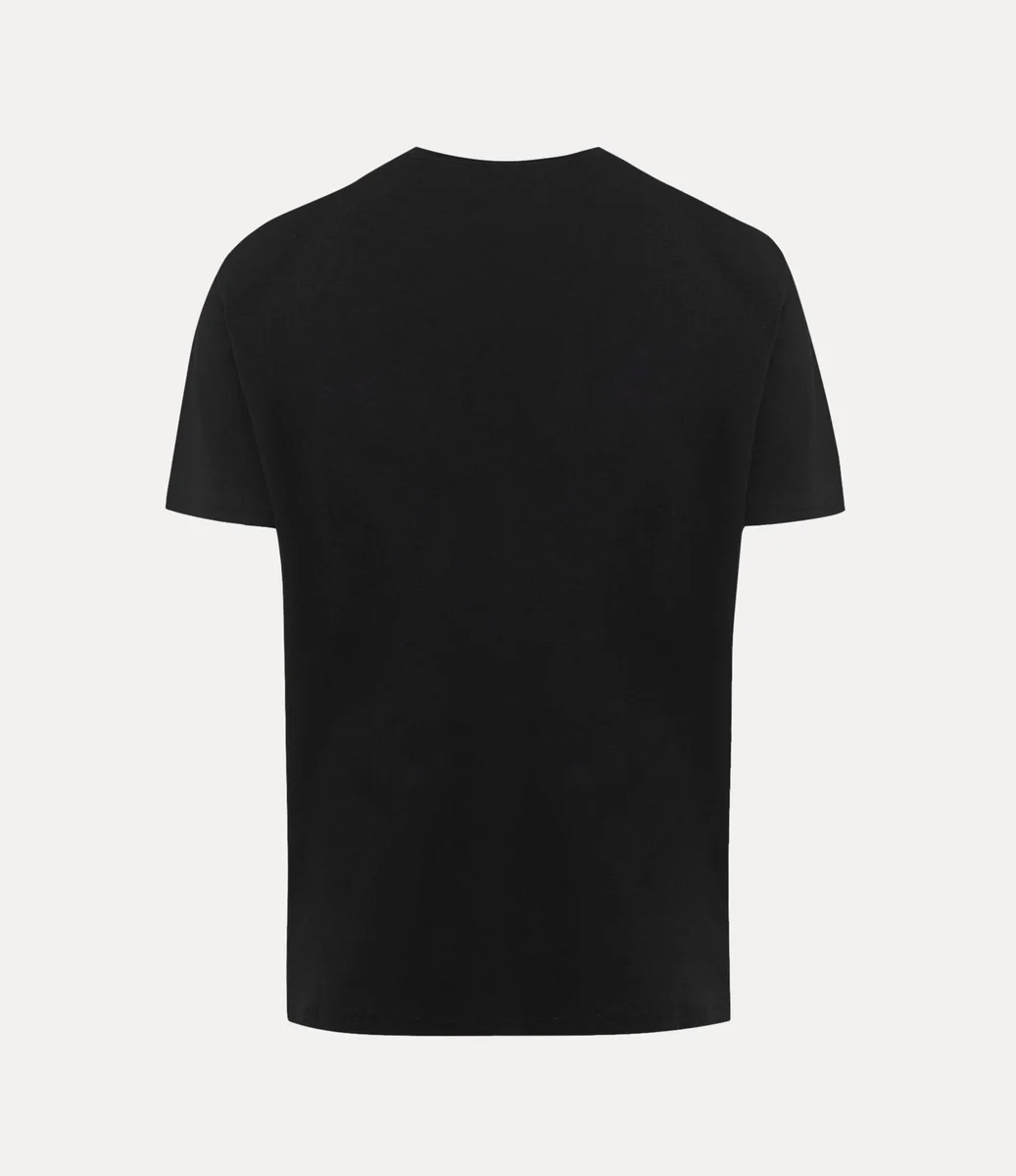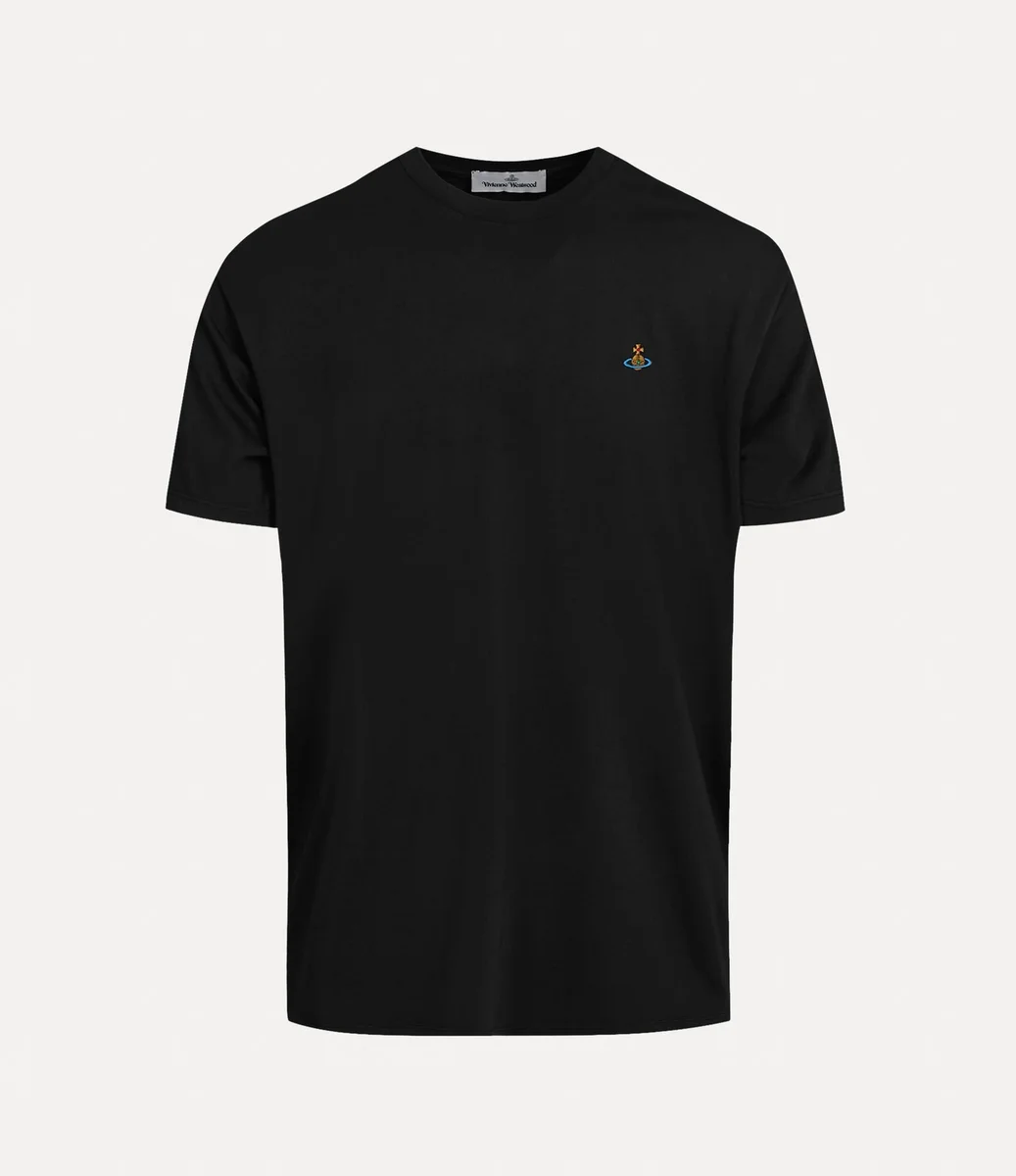 Vår klassiska T-shirt har en mjuk bomullssilhuett med korta ärmar och rund halsringning. Plagget har ett broderat flerfärgat orb-mönster på vänster sida av bröstet – synonymt med Viviennes vision om att ta traditionen in i framtiden.