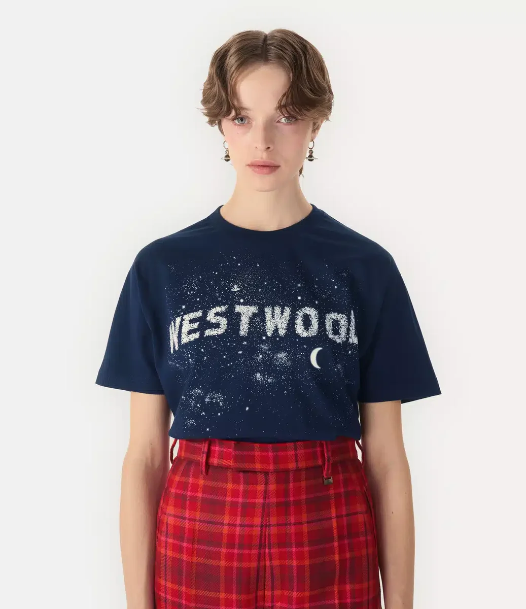 Nana Classic T-shirt är exklusivt designad för Vivienne Westwood X Nana-kollektionen och tillverkad i lätt bomull med en avslappnad silhuett, rund halsringning och korta ärmar. Plagget är avslutat med ton-i-ton-sömmar och tryckt med det himmelska konstverket ”Westwood Galaxy”.