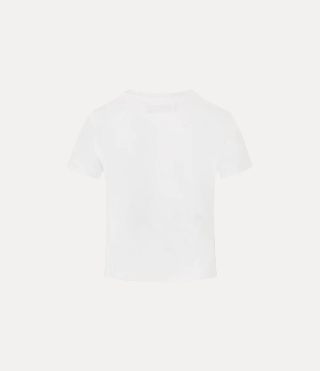 Den här säsongen har vår klassiska Peru-T-shirt fått en ny design med en kortare silhuett. Paris Orb Mini Peru-T-shirten är tillverkad i lätt bomull och har rund halsringning, korta ärmar och rak fåll. Designen pryds av det ikoniska orb-motivet, som symboliserar husets etos att länka samman det förflutna med framtiden.