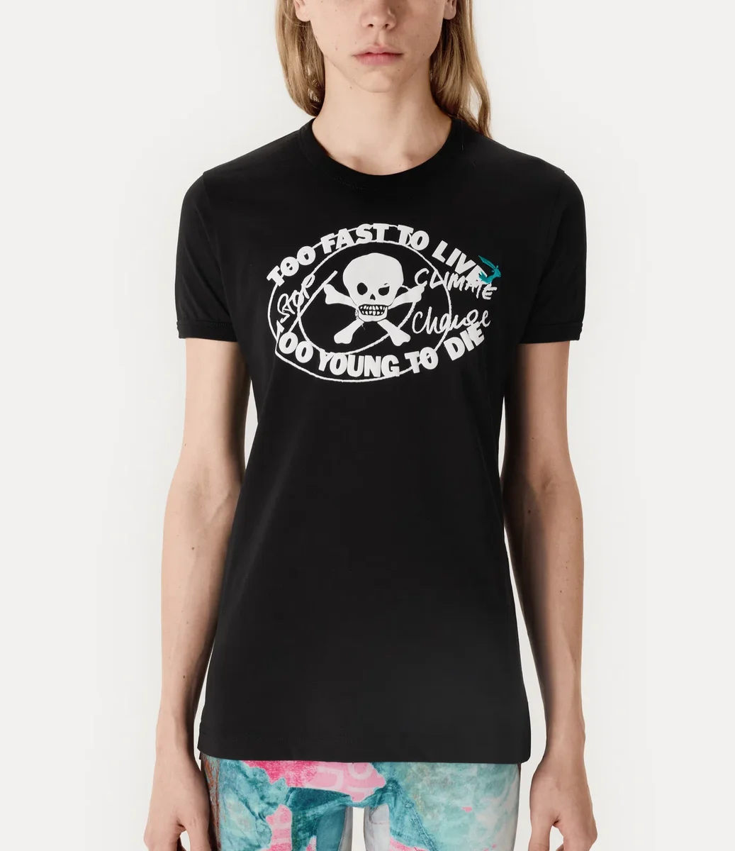 Vår Worlds End Classic-t-shirt är tillverkad av lätt bomull, med rund halsringning, korta ärmar och rak fåll. Designen kompletteras med sloganen ”Too Fast to Live, Too Young to Die”, hämtad från skylten på vår ikoniska butik, nu känd som Worlds’ End.