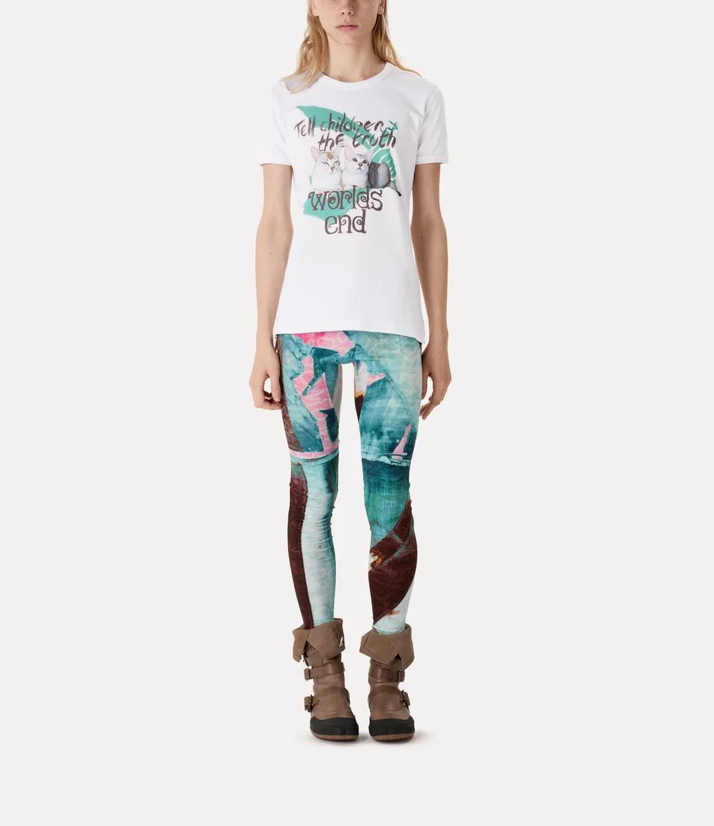 Vår Worlds End Classic T-shirt är tillverkad av mjuk bomull och har korta ärmar med en klassisk rund halsringning. På framsidan finns arkivbilden ”Cats” tillsammans med sloganen ”Tell the children the truth” – som tar upp samhällets likgiltighet inför miljökatastrofer och vapenhandelns koppling till klimatkrisen.