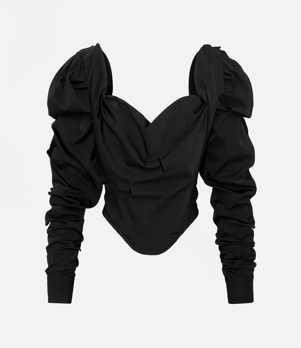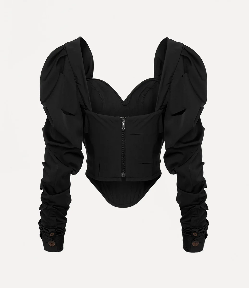Vår LS Sunday Corset Top är tillverkad av rikt färgad taft och har ett delikat laserskärat mönster, inspirerat av konstverk från Andreas Kronthalers höst-vinterkollektion 2024–2025. Plagget har en skulpterad korsettliknande överdel och avslutas med en dragkedja med graverad kula på baksidan.