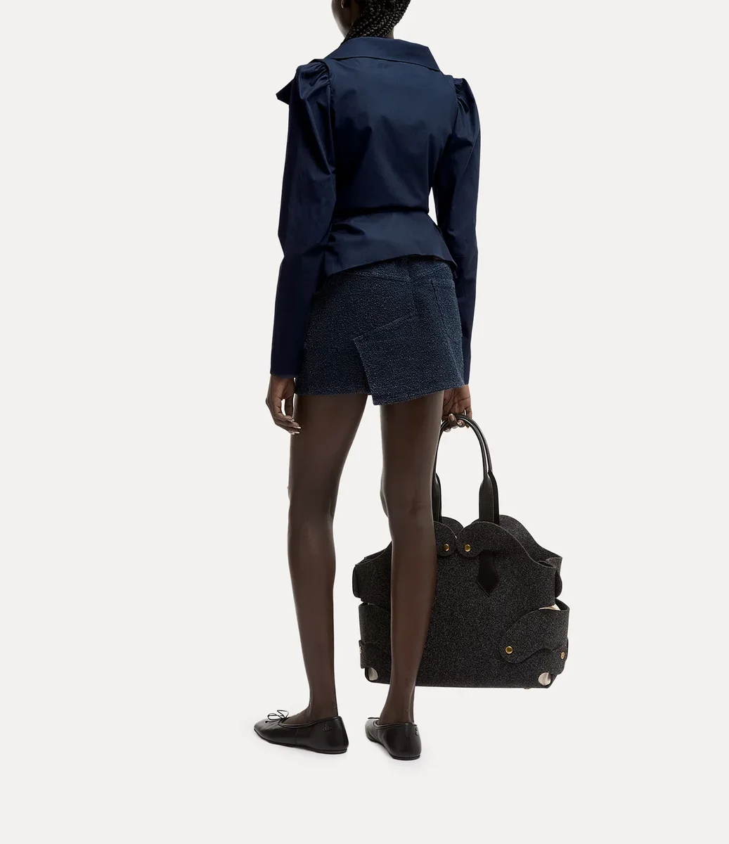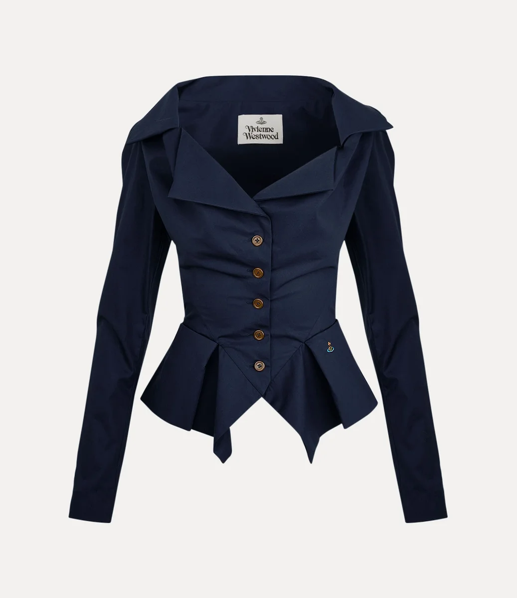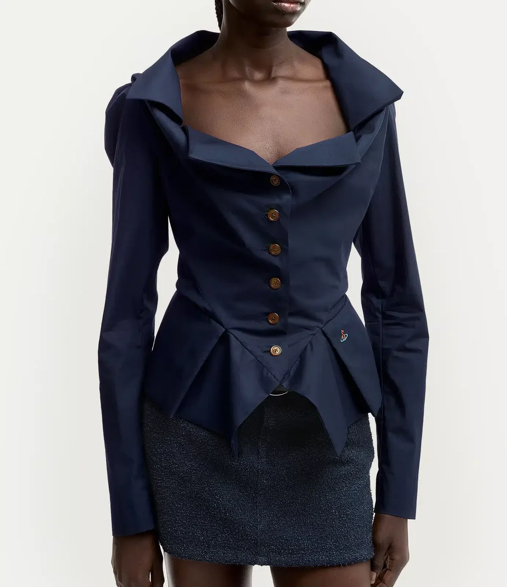 Vår Monday-skjorta har origamiliknande veck i tyget runt halsringningen, prydda med knappar med ingraverade bokstäver och vårt signaturbroderi med flerfärgade kulor på höften. Plagget har en figursydd överdel med en utsvängd, plisserad tygförlängning i midjan och eleganta puffärmar.
