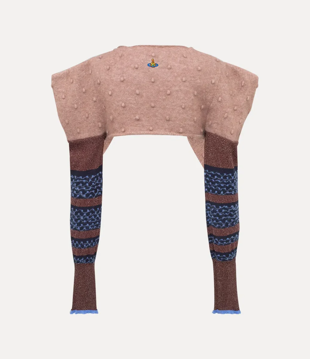 Vår Rubina-bolero är tillverkad av en mjuk alpackaullblandning och har en lekfull bobble-stickad struktur över överkroppen. Plagget har en bred båthalsringning och skulpturala axlar och avslutas med figursydda ärmar i flera texturer som kontrasterar mot den korta silhuetten.p>