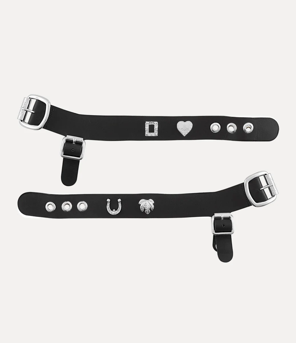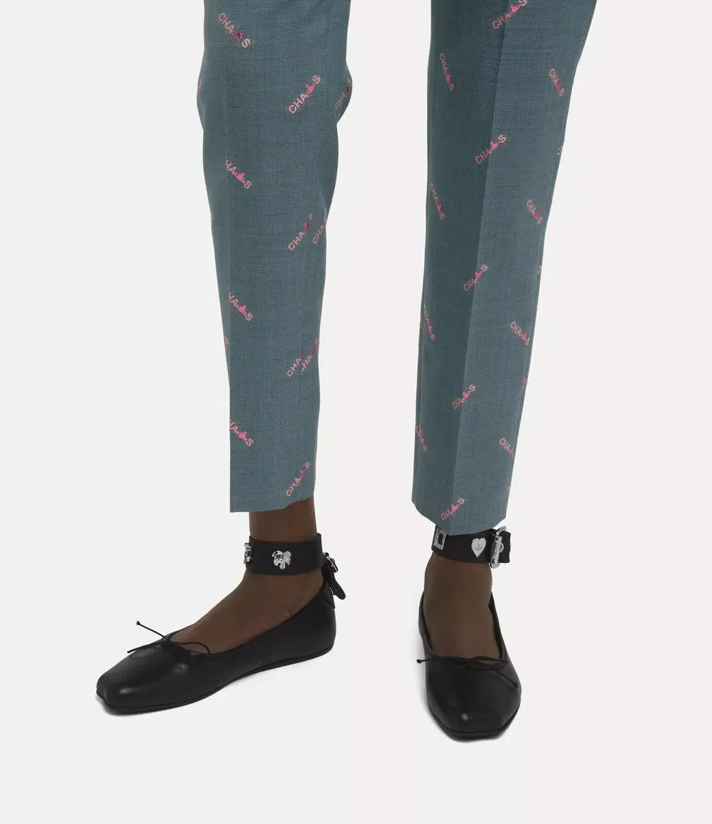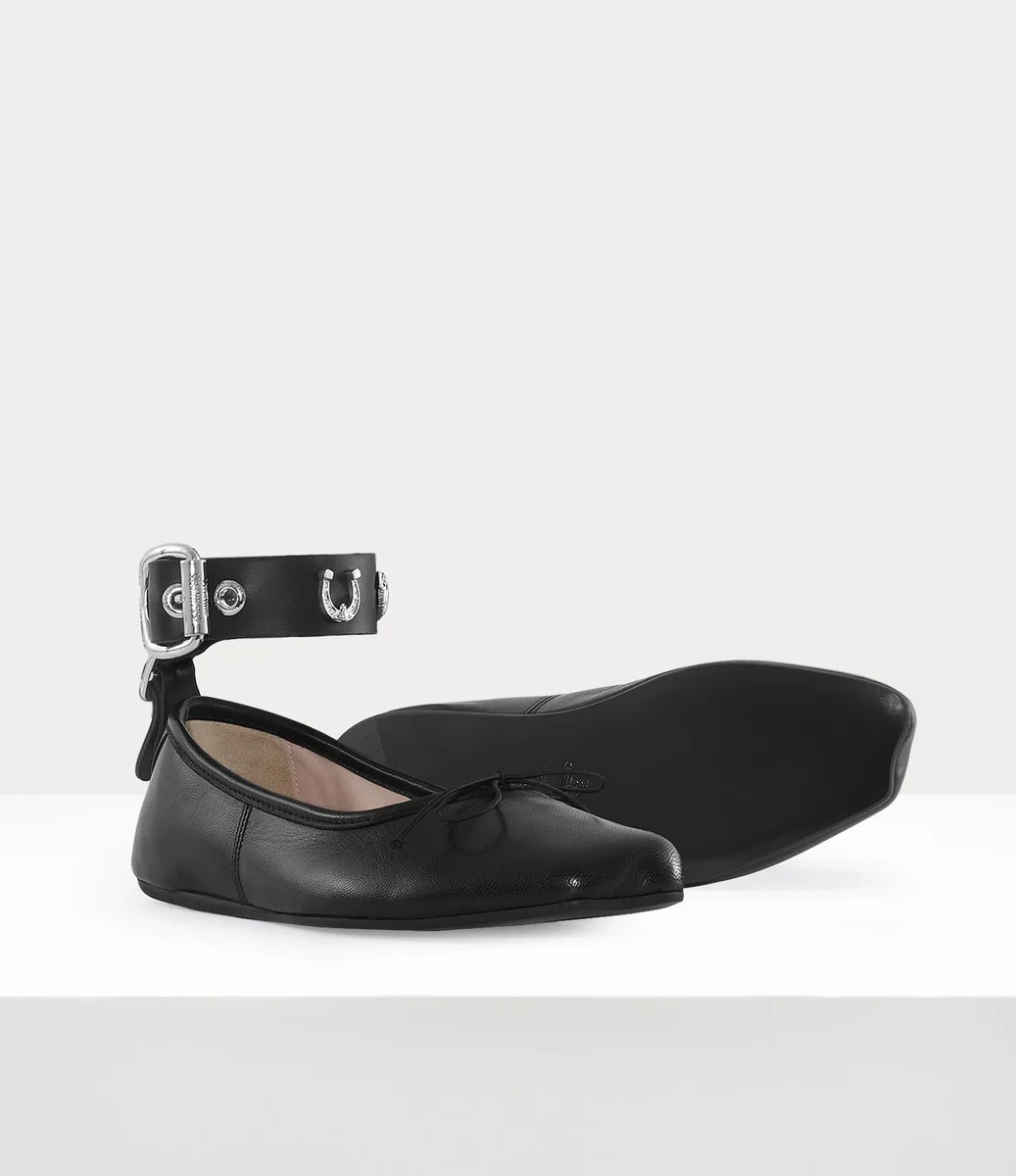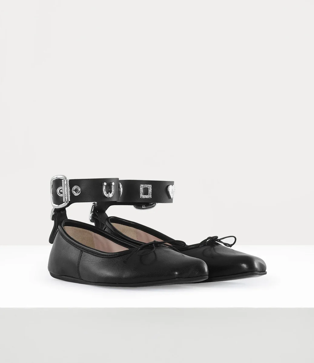 Våra Bardot ballerinaskor har en avtagbar ankelrem, prydd med hjärtan, fikonblad och hästskomotiv, som hyllar husets signaturikonografi. Modellen har en anatomisk silhuett som påminner om husets signaturmotiv ”Animal Toe”, som först presenterades i vår-sommarkollektionen 2000, ”Summertime”.