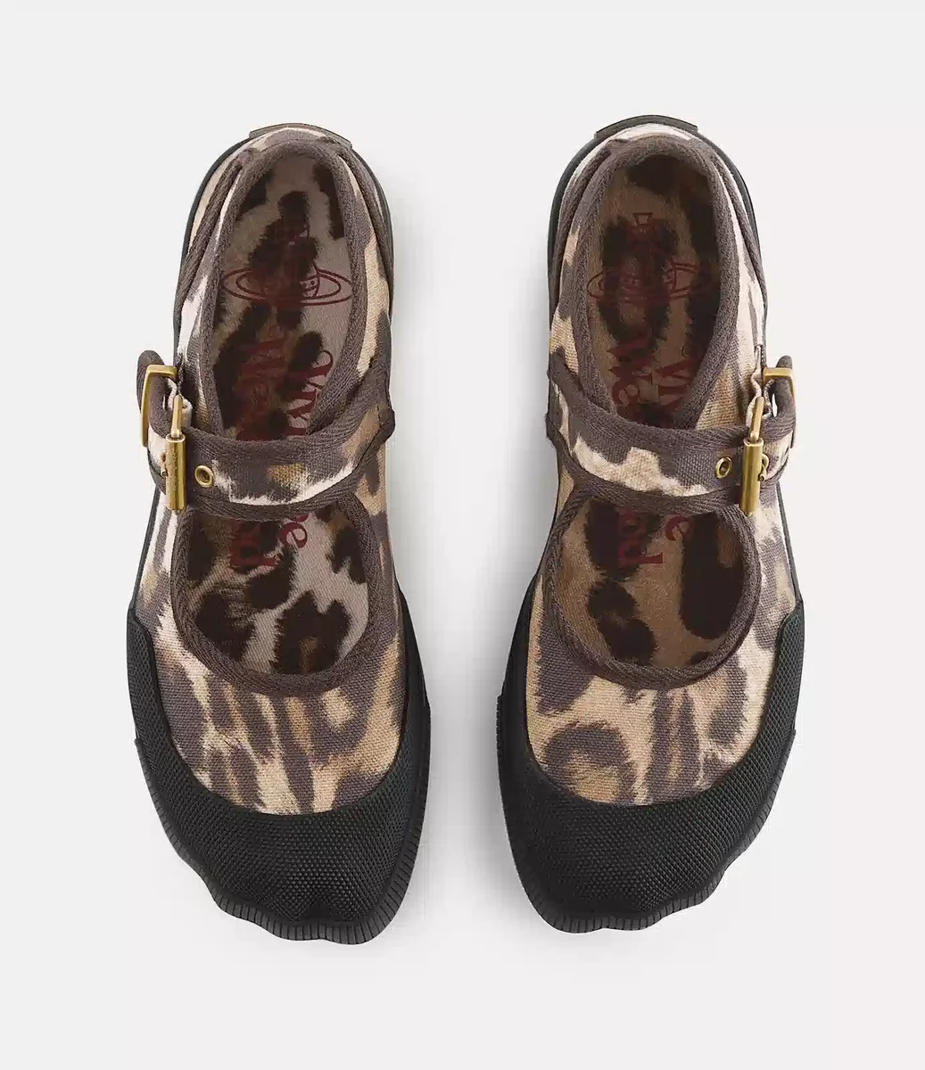 Animal Gym Bar-skorna har fått en ny design denna säsong med ett heltäckande leopardmönster, som anspelar på Viviennes höst-vinterkollektion 2001 ”Wild Beauty”. De har modehusets arkivdesign ”Animal Toe” – som liknar en lejonfot eller ett mytiskt djur – och är avslutade med den ikoniska kulan på hälen, som symboliserar etoset att driva det förflutna in i framtiden.