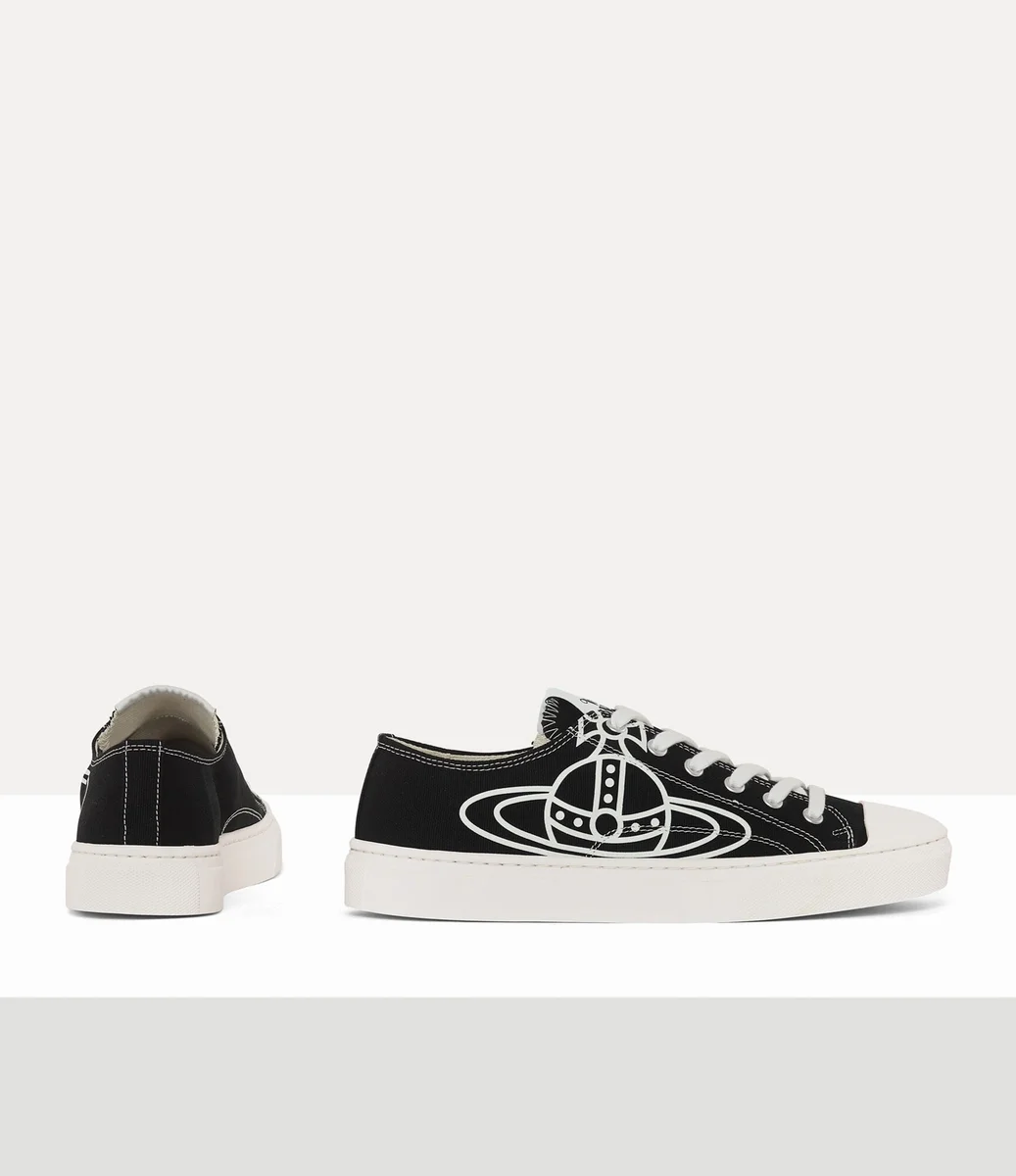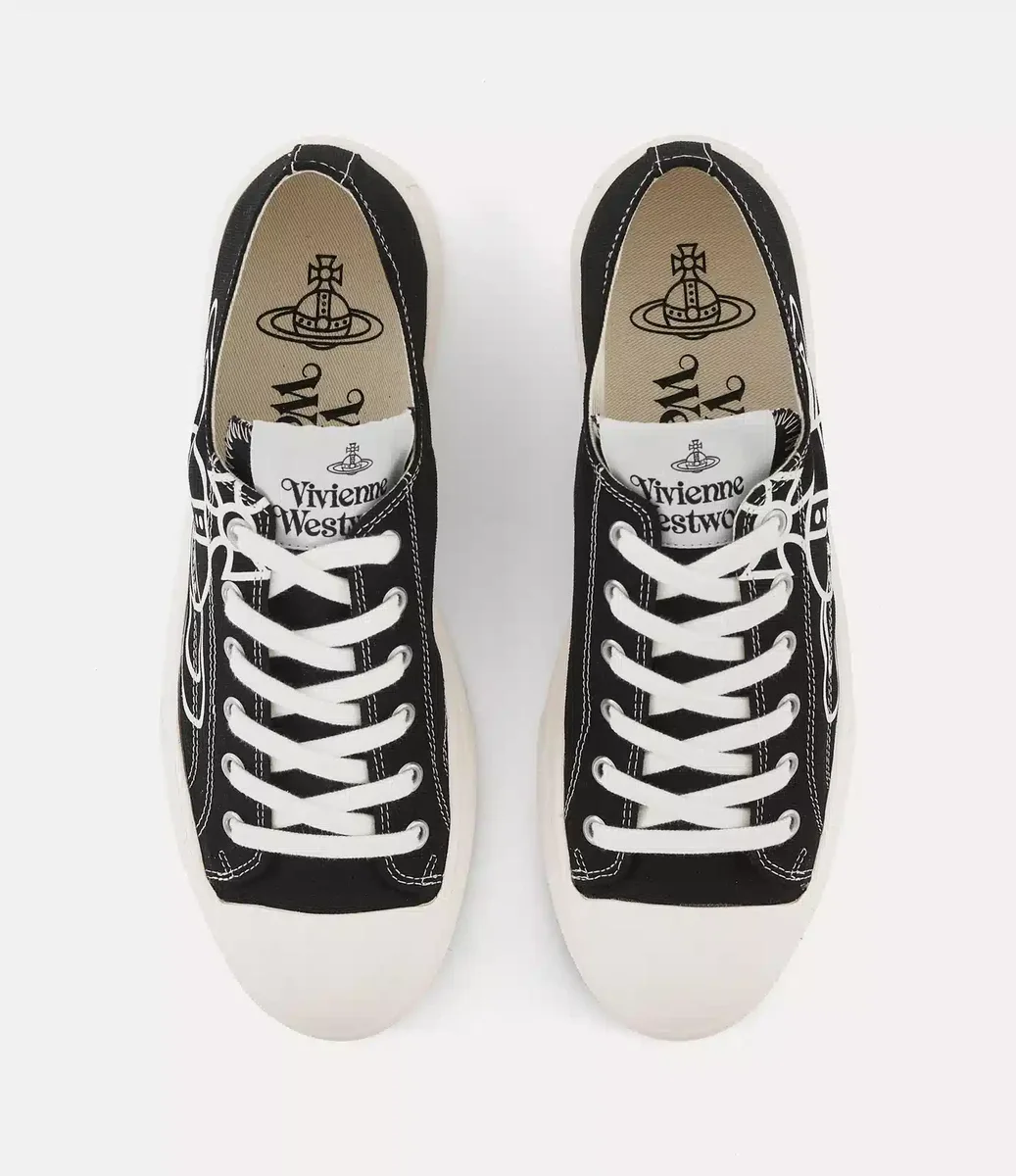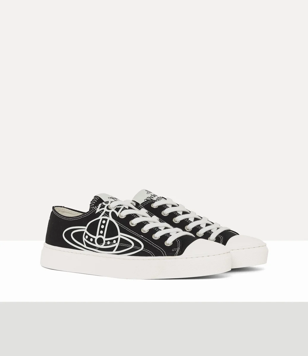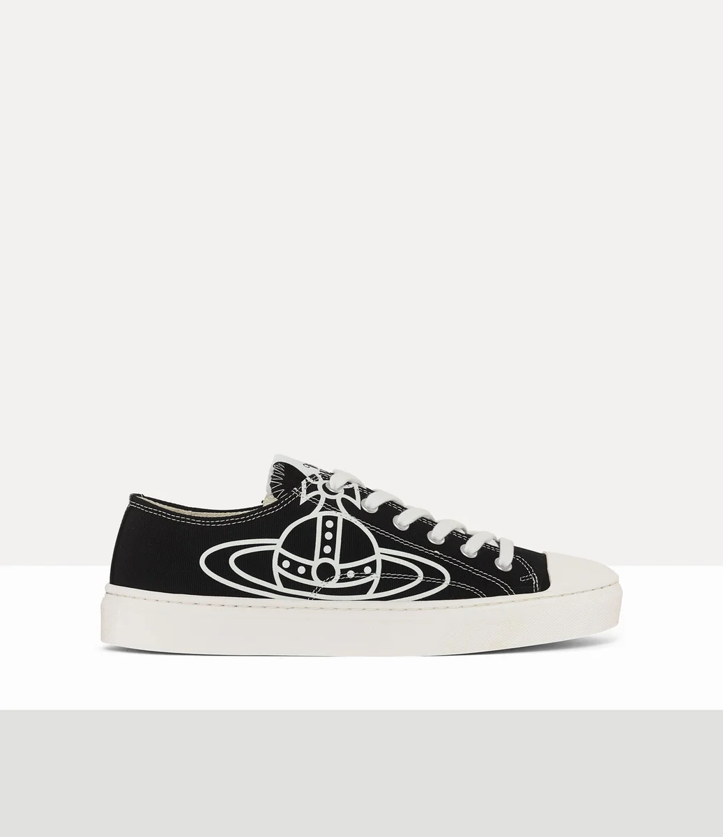 Våra låga canvas-gymnastikskor har vårt arkivmotiv ”Line Orb” över hela designen – synonymt med Viviennes vision om att föra traditionen in i framtiden. Skorna har en yta i bomullscanvas och är prydda med en vävd etikett på plösen.