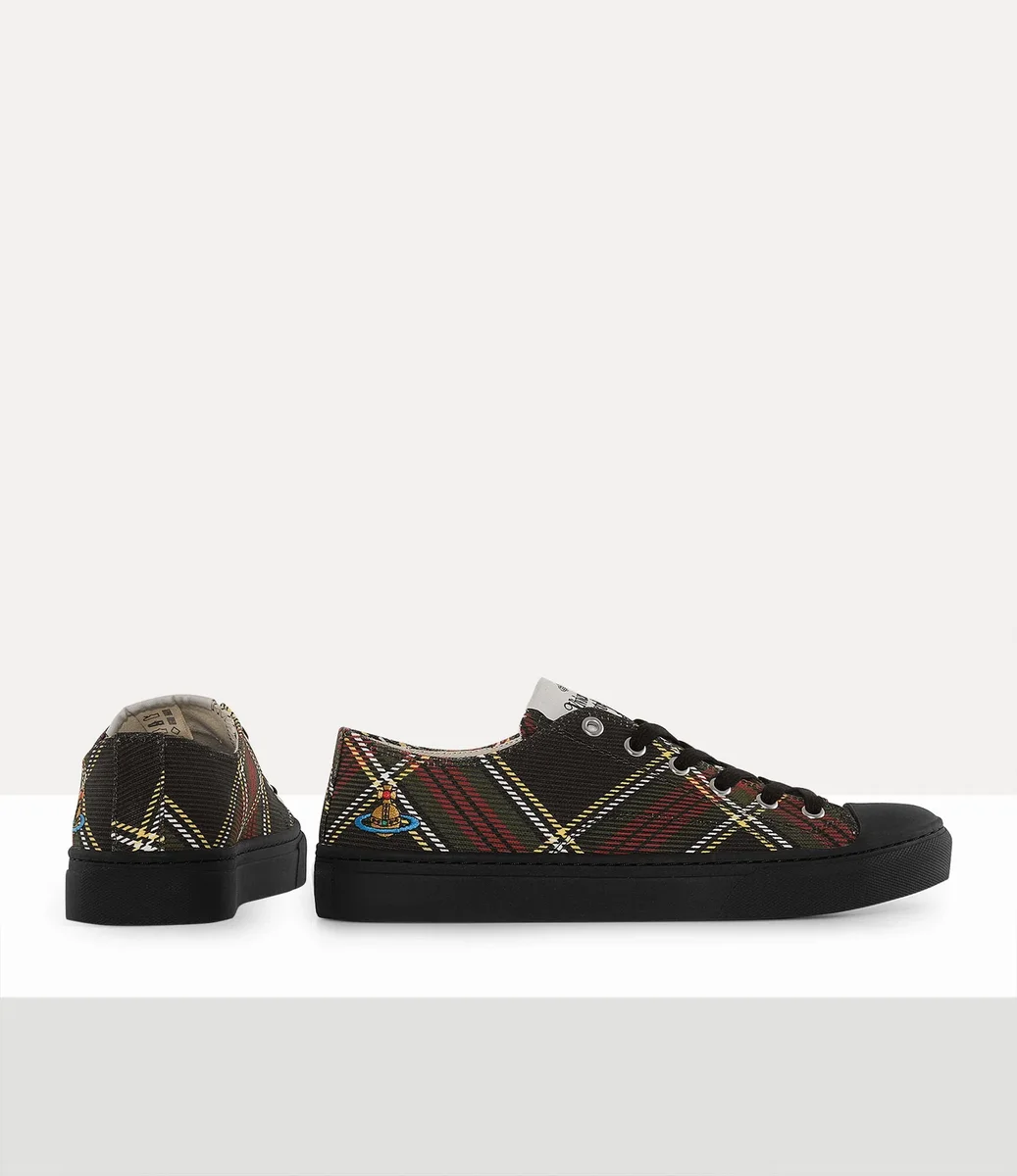 De klassiska låga plimsoll-skorna har fått en ny design denna säsong i tryckt bomullscanvas, med detaljer i form av klassiska snörningar. Modellen är broderad med en delikat mångfärgad sfär på sidan och kompletteras med ett mjukt bomullsfoder.