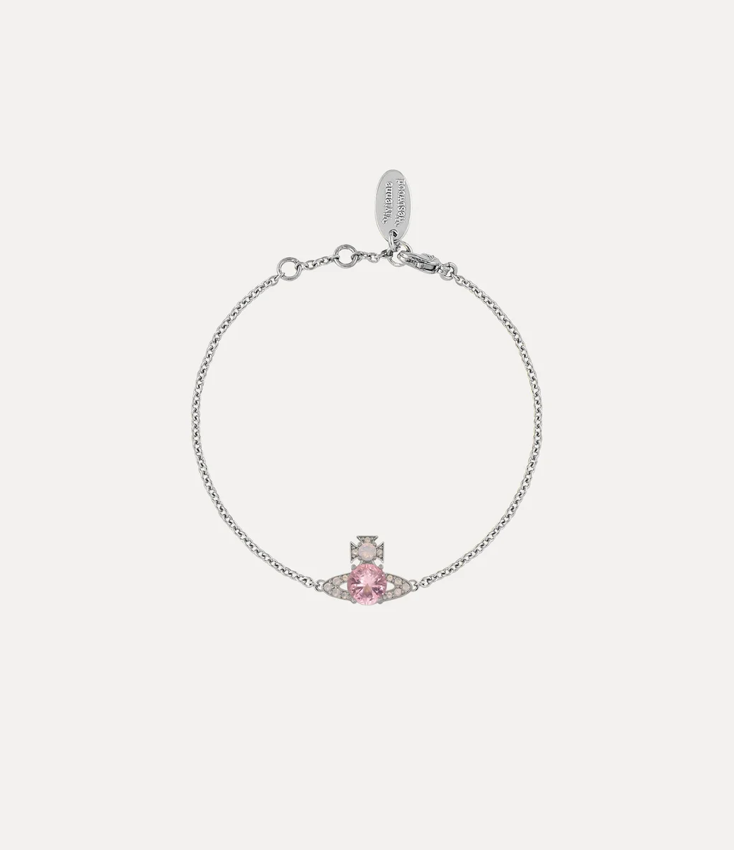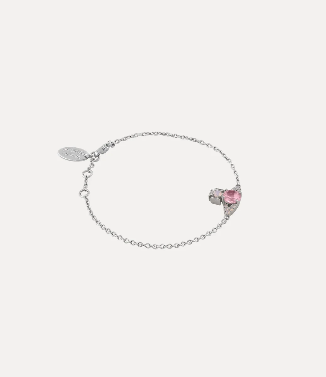 Vårt Ismene-armband har uppdaterats denna säsong med glittrande rosa kristalldetaljer och polerad silverplätering. I mitten sitter en sfär som symboliserar tradition, omgiven av Saturnus himmelska ringar som symboliserar framtiden.