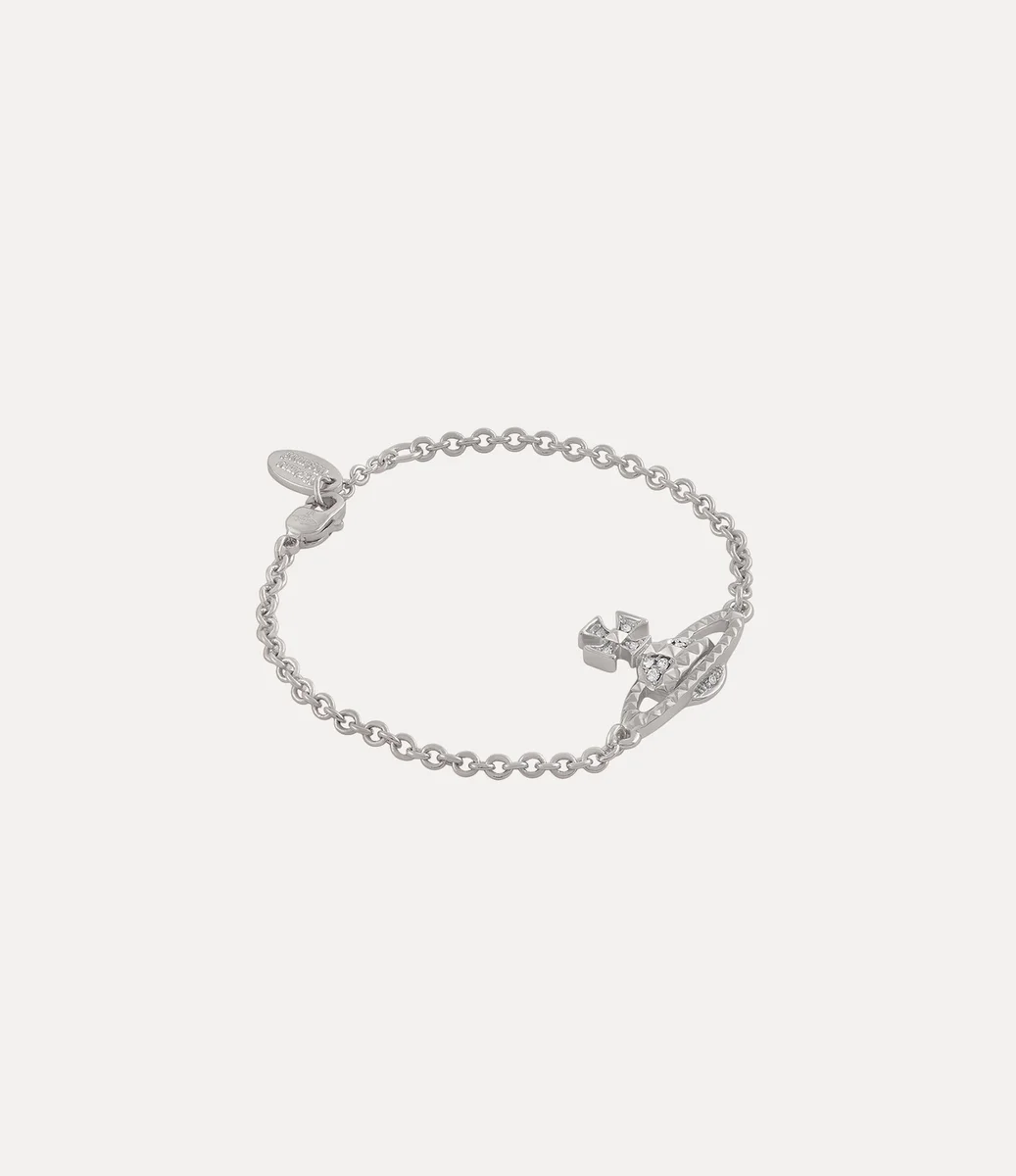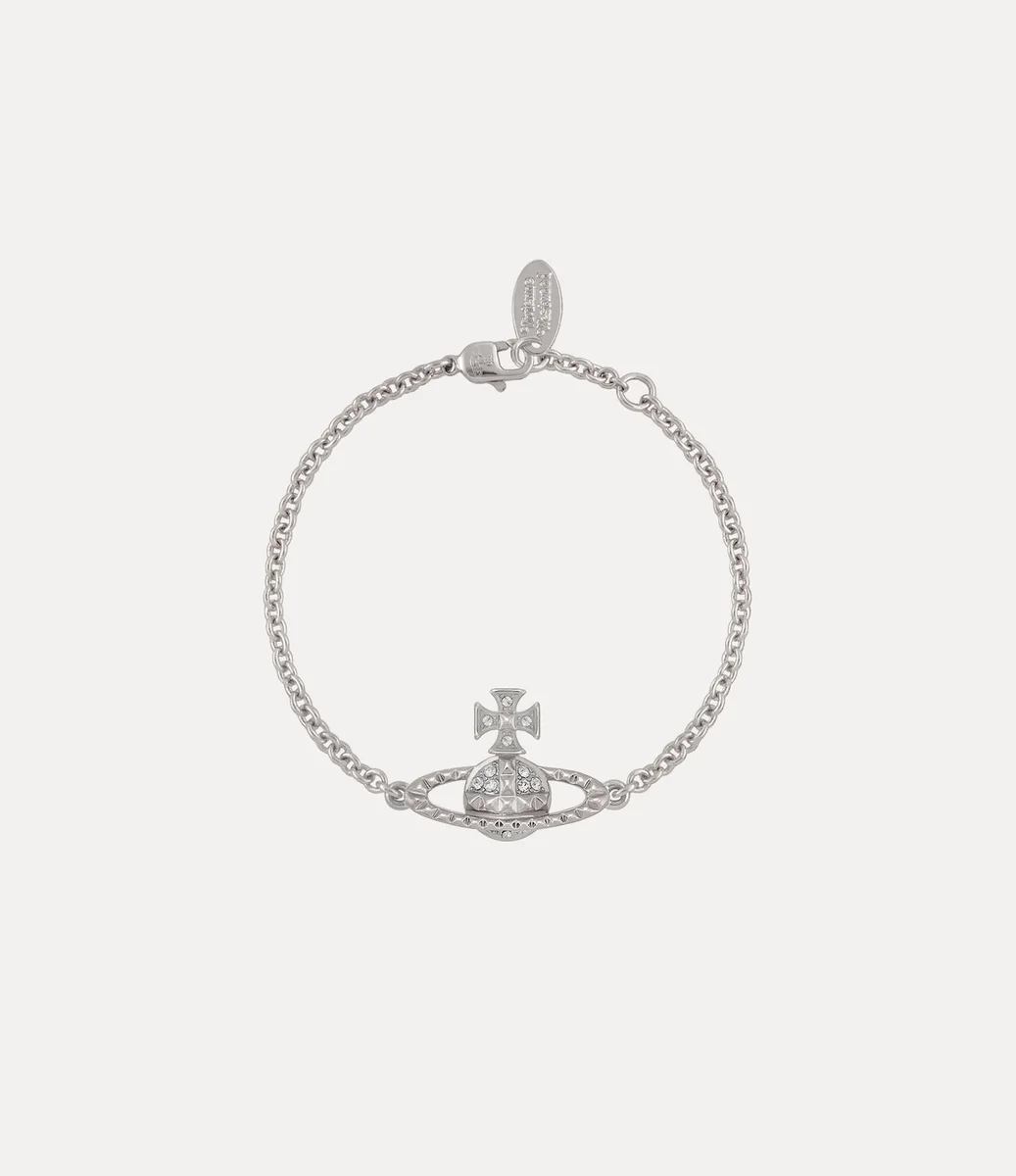Vårt Mayfair Bas Relief-armband har fått en ny design denna säsong, komplett med silverplätering och vita kristalldekorationer. Smycket är uppkallat efter stadsdelen Mayfair i London, som Vivienne var mycket förtjust i, och har pyramidformade nitar och vårt basrelief-orb-motiv.