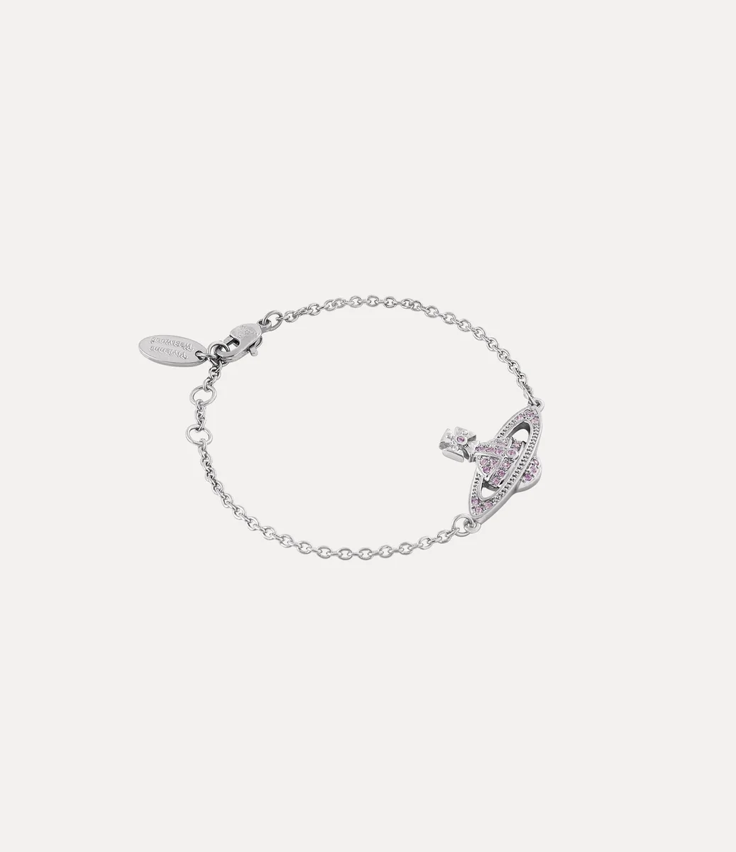 Vivienne Westwood Mini Bas Relief Chain-armband har glittrande violetta kristalldetaljer och polerad silverplätering.