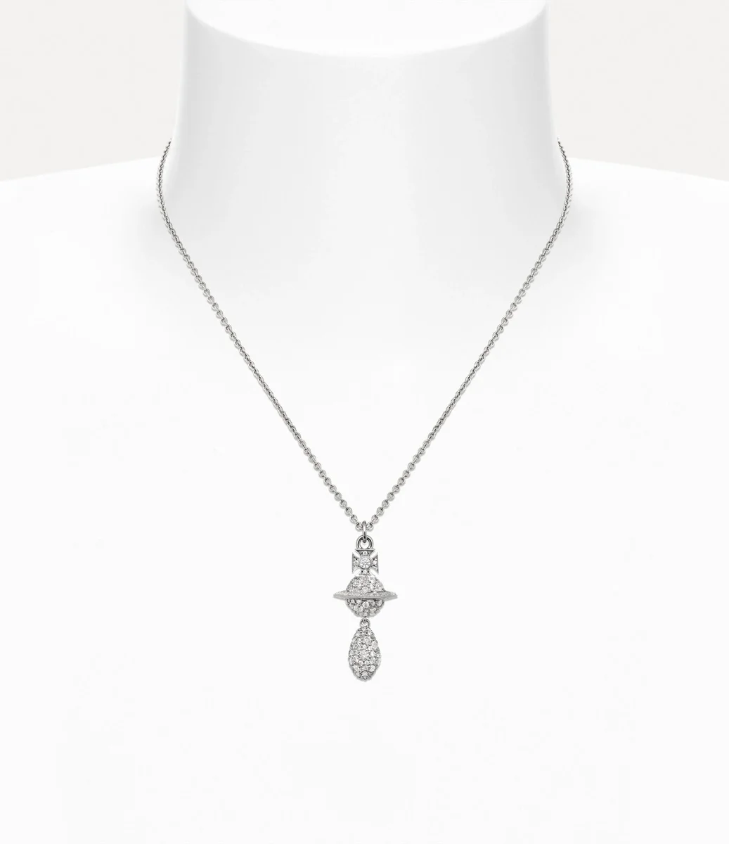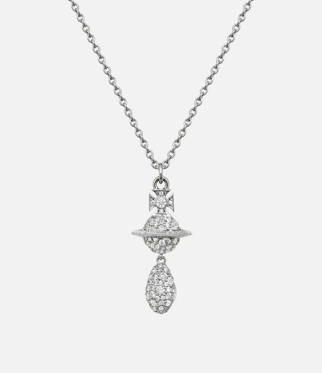 Vivienne Westwood Circe Orb Pendant-halsbandet har den klassiska kulan täckt med pavékristaller, avslutad med en droppformad pärla och ett karbinhake-lås.