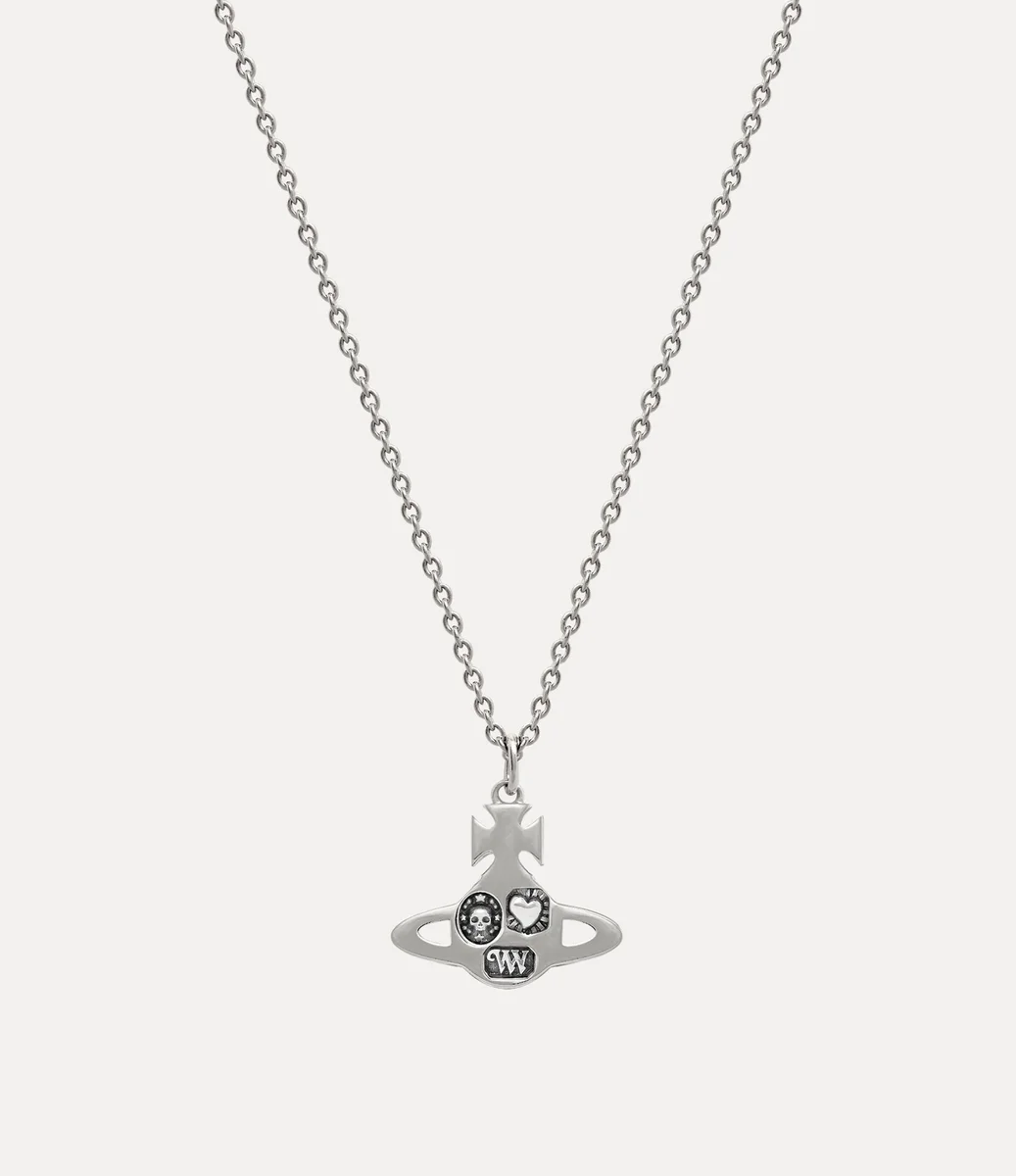 Vårt Crispin-halsband är inspirerat av traditionell stämpling och har intrikat detaljerad husikonografi i mitten, som om den vore stämplad i designen. Smycket är prydt med vår signaturkula och förstärks av antikplätering.
