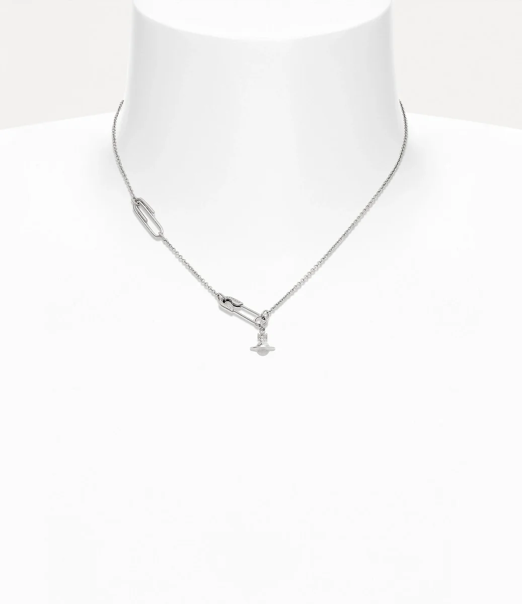 Säkerhetsnålsmotivet är en viktig del av husets ikonografi och påminner om Viviennes signaturpunkestetik. Silhuetten på säsongens Safety Pin Pendant-halsband återupplivar motivet, komplett med en klassisk dinglande kula som avslutning – synonymt med Viviennes vision om att föra traditionen in i framtiden.