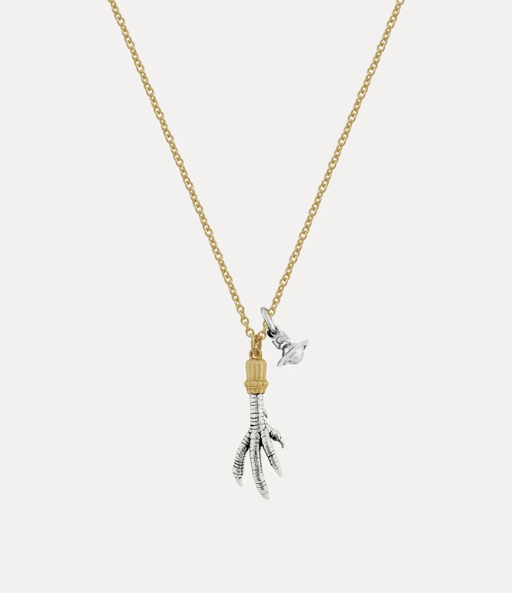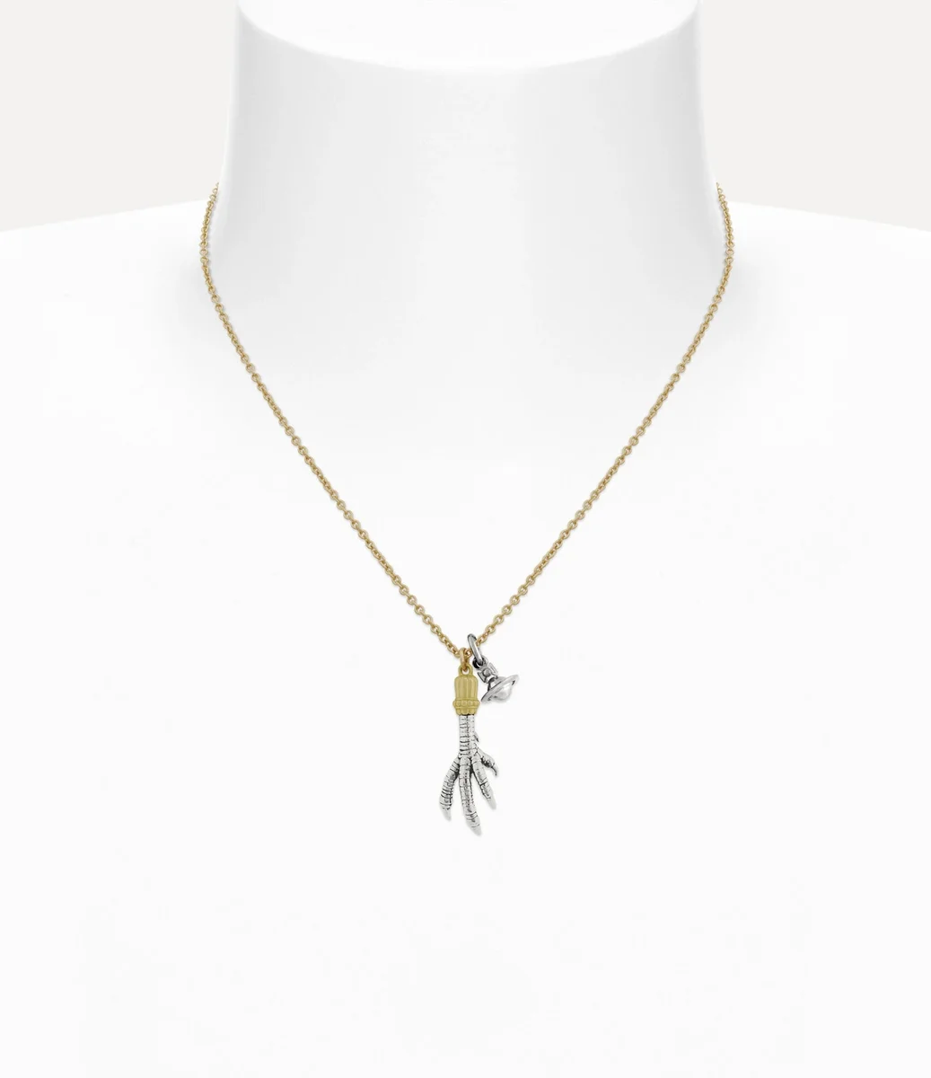 Halsbandet Joselita Pendant har säsongens slående kycklingfotsmotiv, en symbol för lycka. Halsbandet är förstärkt med en svart patina för att framhäva dess texturer och har en blandad metallfinish med polerad plätering och en hängande sfär, som symboliserar husets etos att ta med sig det förflutna in i framtiden.