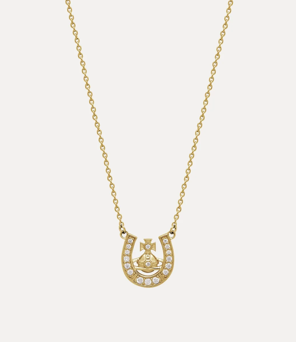 Vårt Mare halsband är tillverkat av återvunnet silver och har en polerad guldplätering. Designen har husets klassiska glob- och hästskomotiv, som hyllar husets signaturikonografi, prydd med tonala kristalldetaljer.
