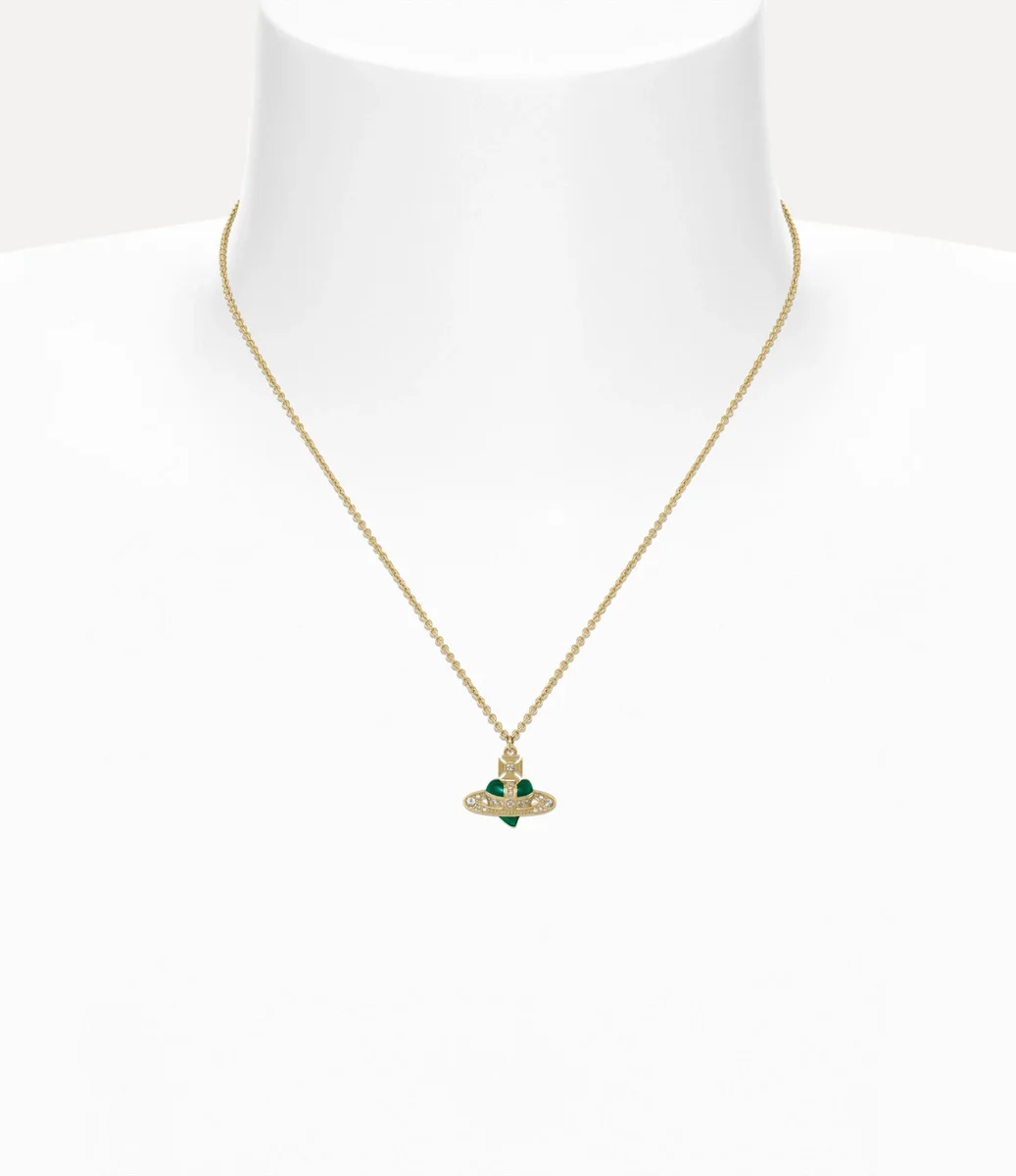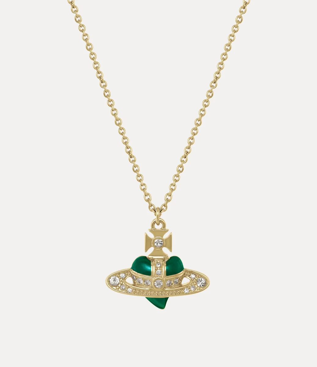 Hjärtformen har blivit ett signum för modehuset och är synonymt med Viviennes kärlek till både mänskligheten och planeten. Vårt nya Diamante Heart-halsband återupplivar vår ikoniska asymmetriska hjärtsilhuett, konturerad med guldfärgade kristaller och avslutad med handmålad genomskinlig emalj i mitten av designen.