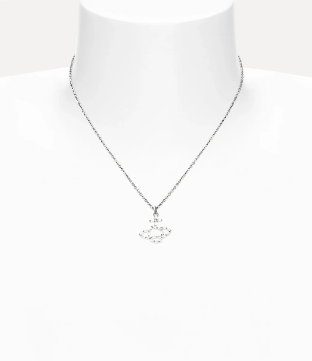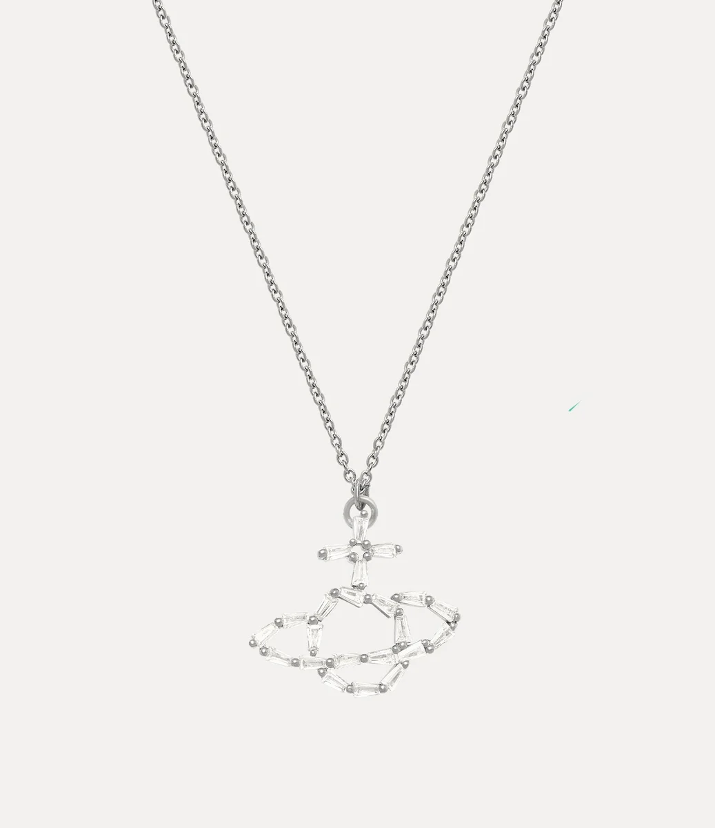 Den här säsongen har vårt signaturmotiv, en sfär, fått en ny tolkning med glittrande, avsmalnande baguetteslipade kristaller som är intrikat arrangerade över hela designen. Odetta hänge-halsbandet har en silverplätering, en delikat kedja och ett säkert karbinhake-lås.