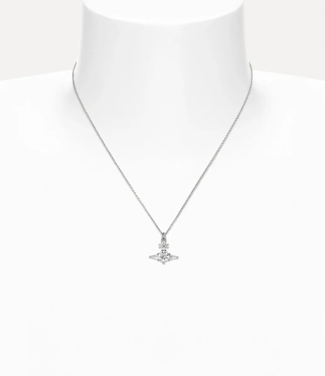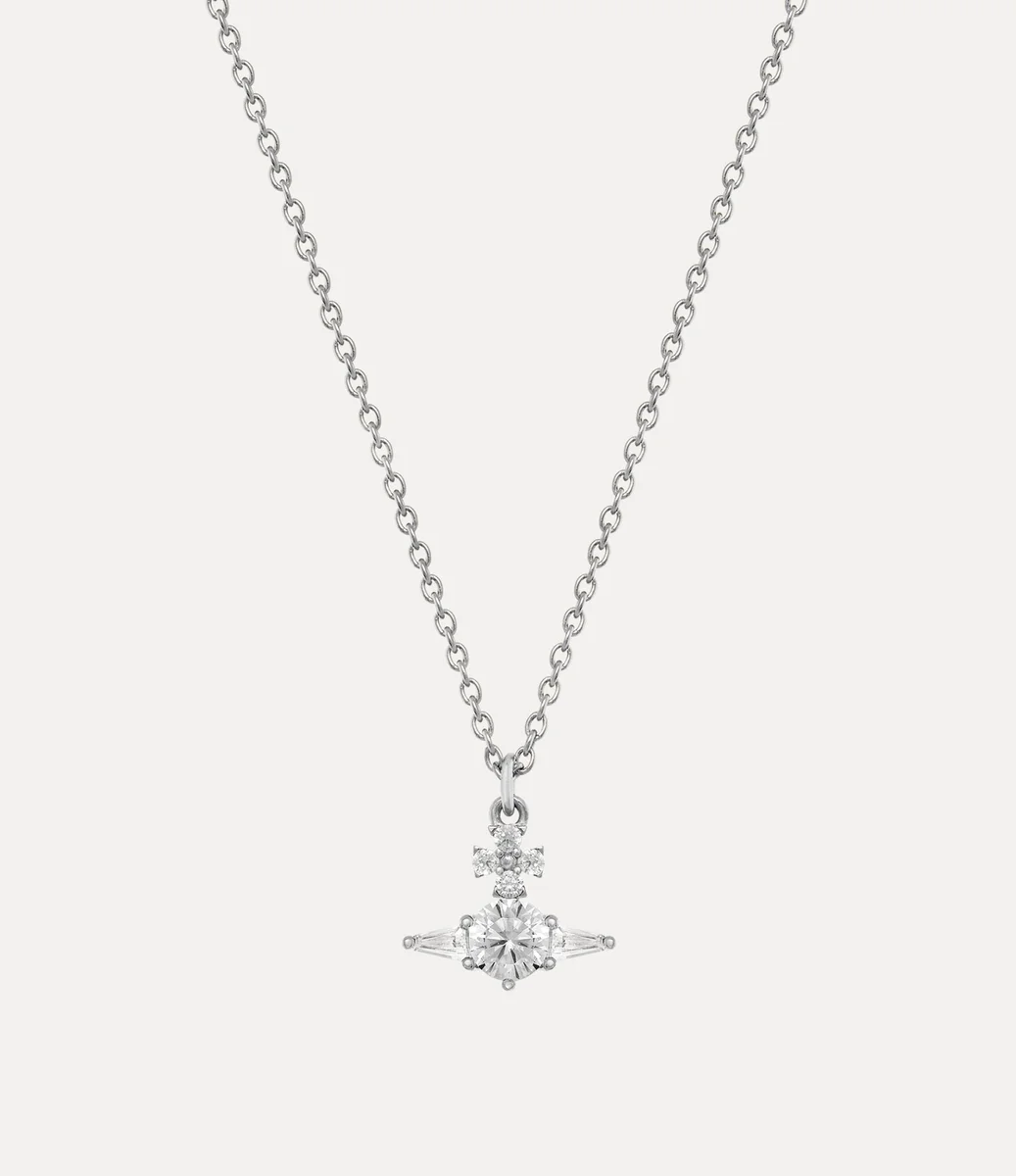 Vårt Ofelia halsband har den klassiska kulan i mitten, inspirerad av vårt hus signaturmotiv i form av en kula. Designen är täckt med glittrande runda och avsmalnande baguette-slipade zirkonkristaller och speglar husets etos att föra det förflutna in i framtiden.