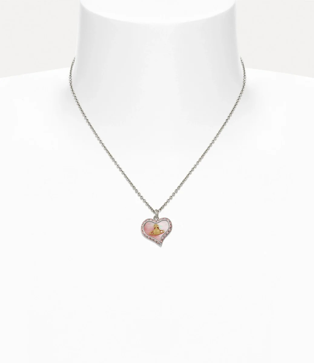 Vårt Petra halsband återupplivar husets signaturmönster, det asymmetriska hjärtmotivet, som är synonymt med Viviennes kärlek till både mänskligheten och planeten. Motivet är konturerat med rosfärgade kristaller och avslutas med ett guldfärgat sfärmotiv i mitten av designen.