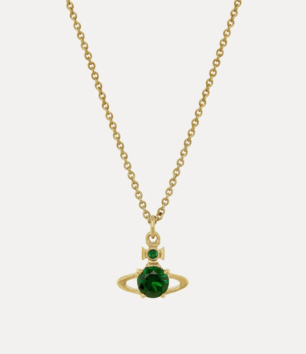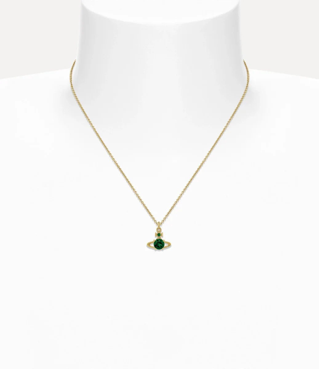 Reina-halsbandet är ett signaturplagg från modehuset, med en distinkt guldfärgad sfär i mitten, inspirerad av vårt modehus sfärformade motiv. Designen är täckt med djupgröna kristalldetaljer och påminner om Viviennes vision om att föra traditionen in i framtiden.