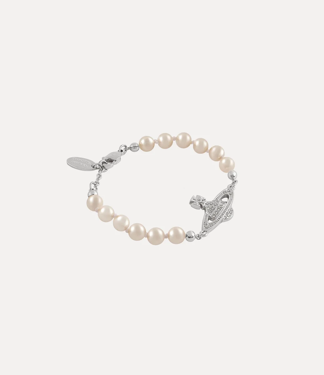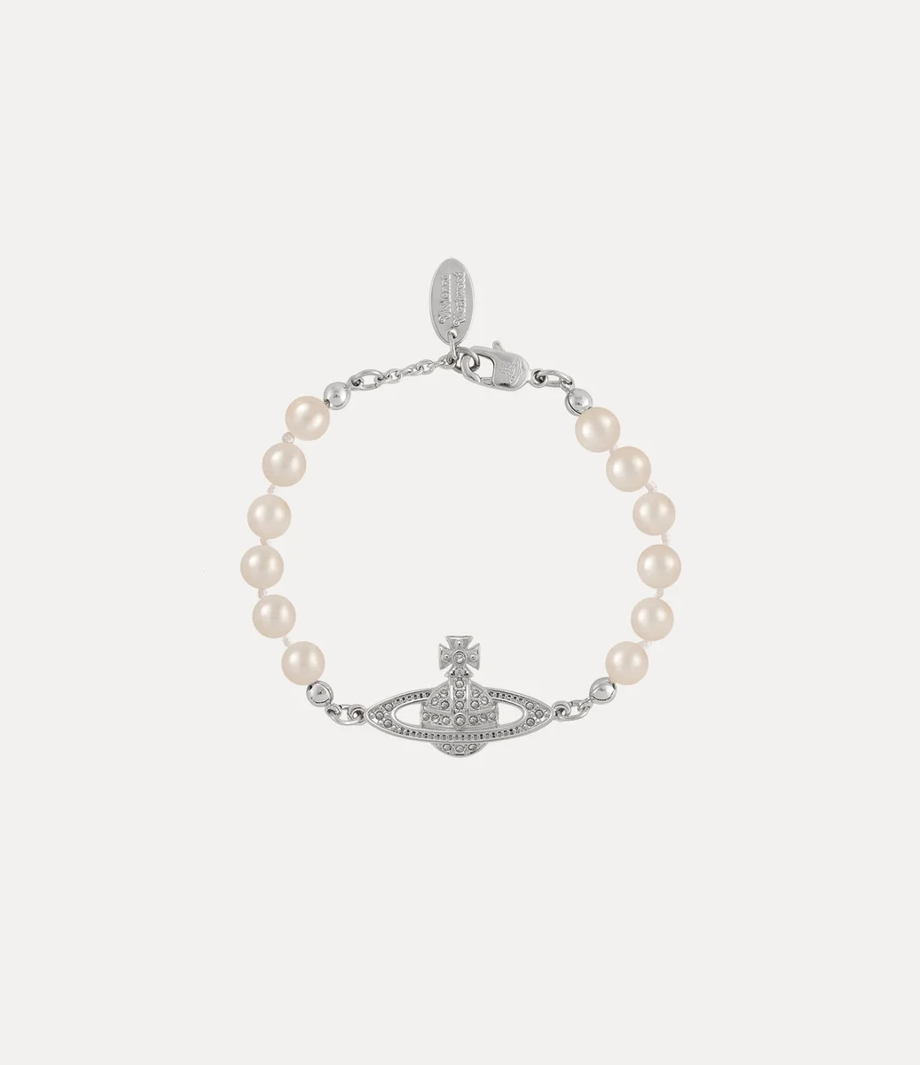 Pärlor är en viktig del av husets image och symboliserar lyx och rebelliskhet. Armbandet Mini Bas Relief Pearl har en rad glasbaserade pärlor, prydda med en kristallbesatt sfär i mitten av designen – synonymt med Viviennes vision om att föra traditionen in i framtiden.