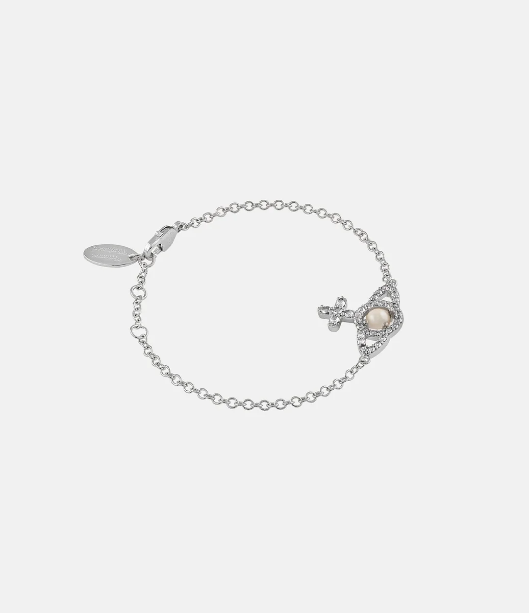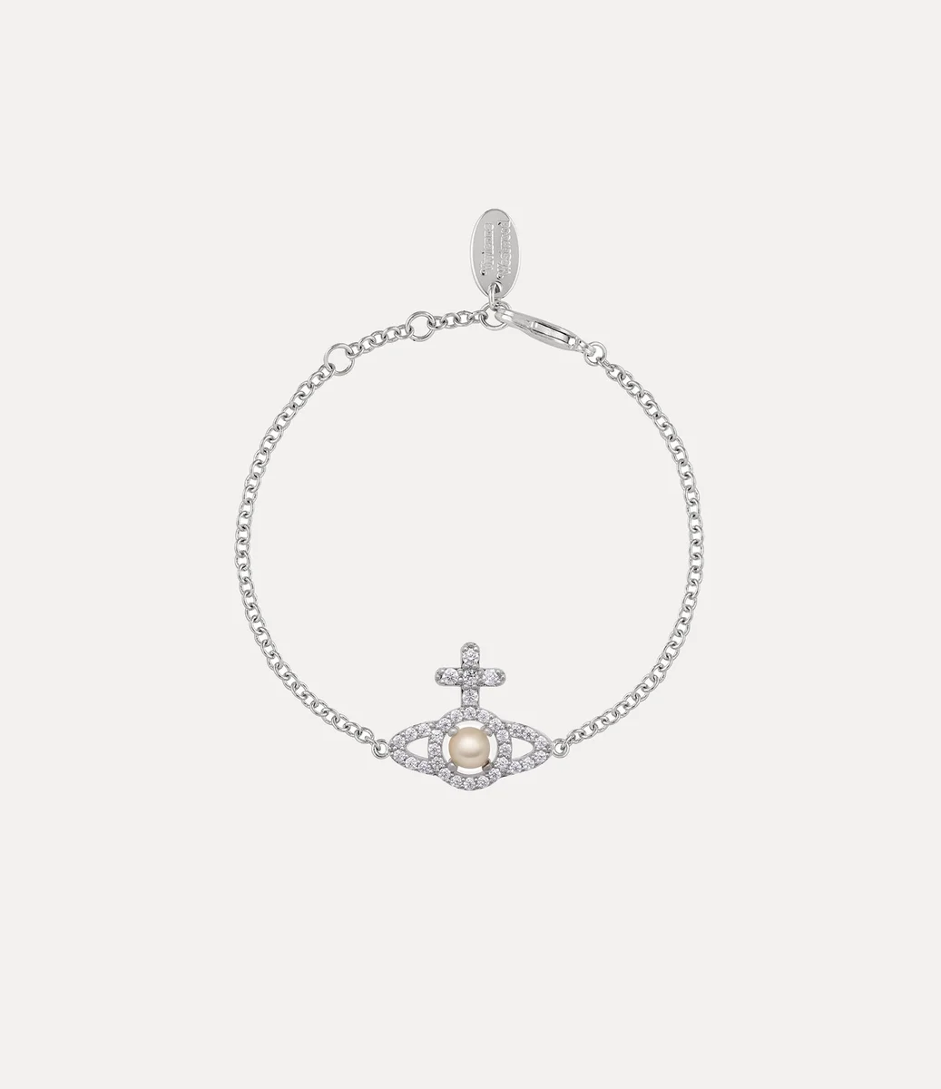 Kulan i Olympia Pearl Chain-armbandet förkroppsligar Viviennes vision om att föra traditionen in i framtiden. Den ikoniska kuldesignen accentueras med vita kristalldetaljer och kompletteras av en glittrande glasbaserad pärla i mitten av smycket.