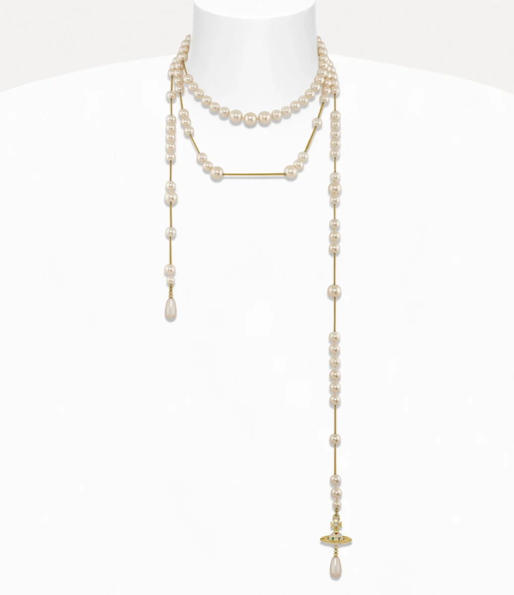 Pärlor är ett viktigt inslag i husets ikonografi och väcker en känsla av storhet och lyx. Broken Pearl-halsbandet introducerades först i kollektionen ”Storm in a Teacup” hösten/vintern 1996–97, inspirerad av rokokokonstens dekorativa mönster. Detta smycke har glaspärlor med Viviennes signaturmönster ”Broken” och är designat för kvinnor som ”står inför skräcken av uniformitet och minimalism”.
