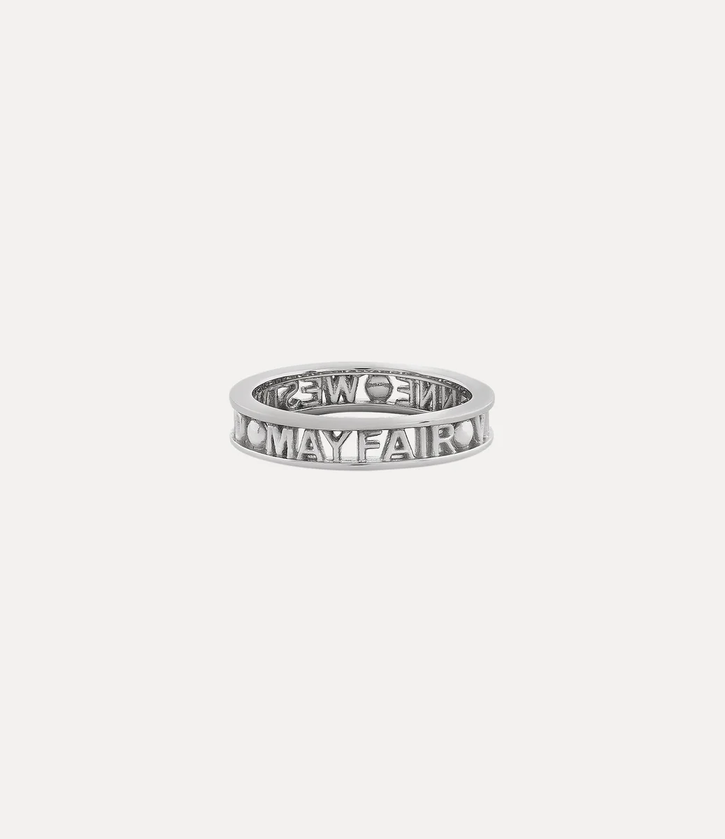 Vår Westminster-ring är uppkallad efter det ansedda Westminster-distriktet i London, känt för sin rika historia och kulturella betydelse. Smycket har en silhuett tillverkad av återvunnet silver, prydd med en platinafärgad yta som elegant omger det smala logotyptrycket på bandet.