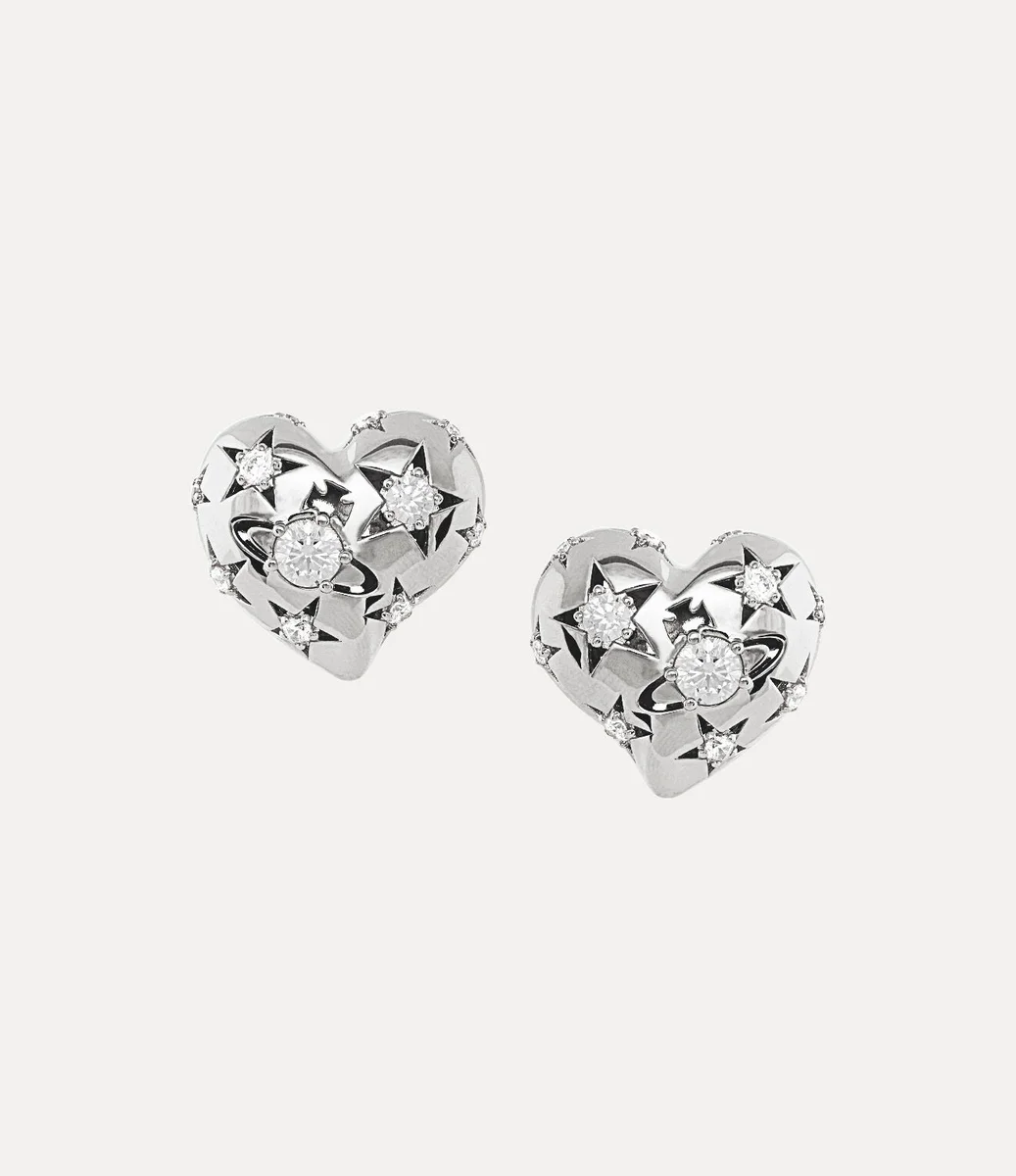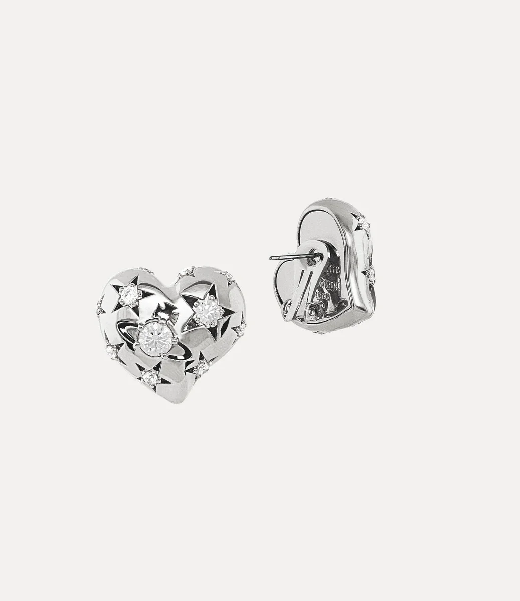 Våra silverfärgade Lee Clip-örhängen återupplivar husets signaturikonografi, prydda med ett klassiskt asymmetriskt hjärtformat motiv. Designen ger en himmelsk charm med stjärnmotiv tillsammans med den centrala sfäriska silhuetten, inspirerad av vårt sfäriska motiv, som påminner om Viviennes vision om att ta traditionen in i framtiden.