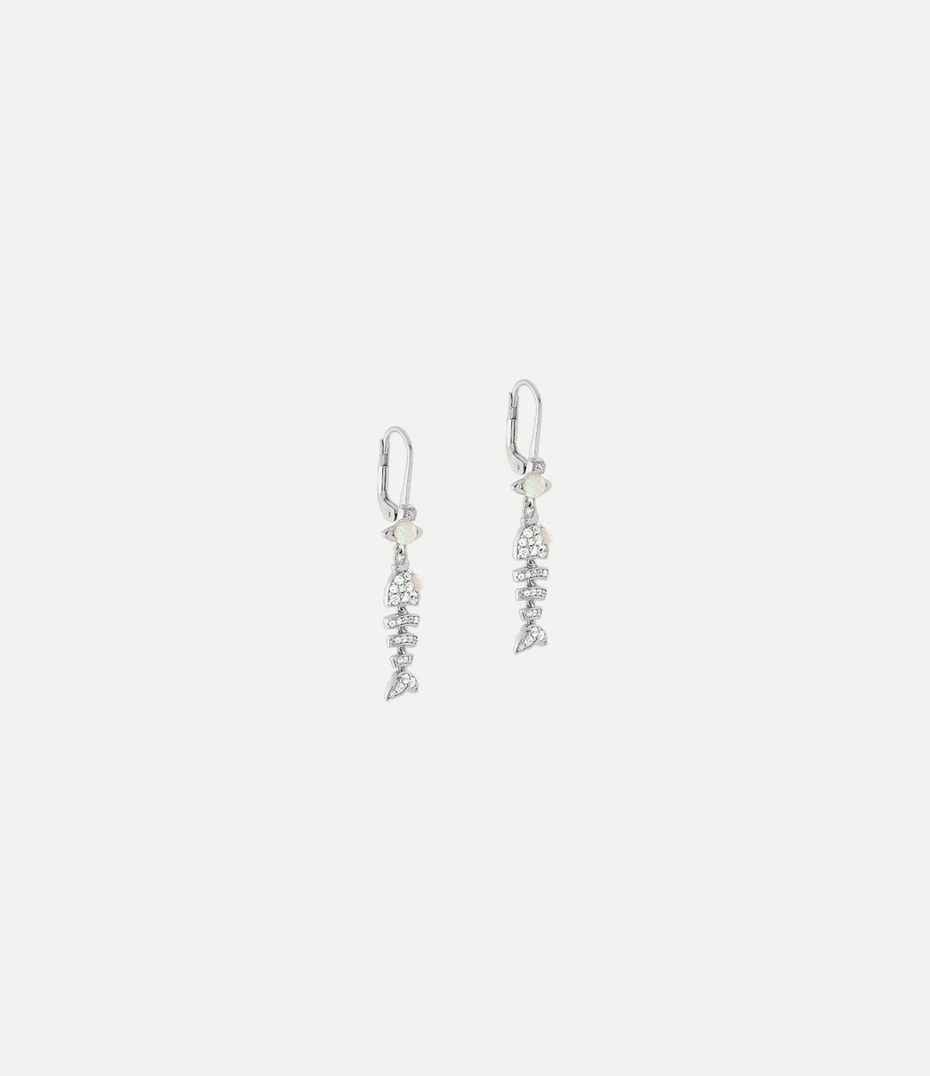 Fiskbensmotivet har blivit ett signum för huset och har dykt upp i många kollektioner genom vår historia. Lyall-örhängena återupplivar motivet, prydda med vita kristalldetaljer och opaliserade ädelstenar, med en yta i platinerat silver.