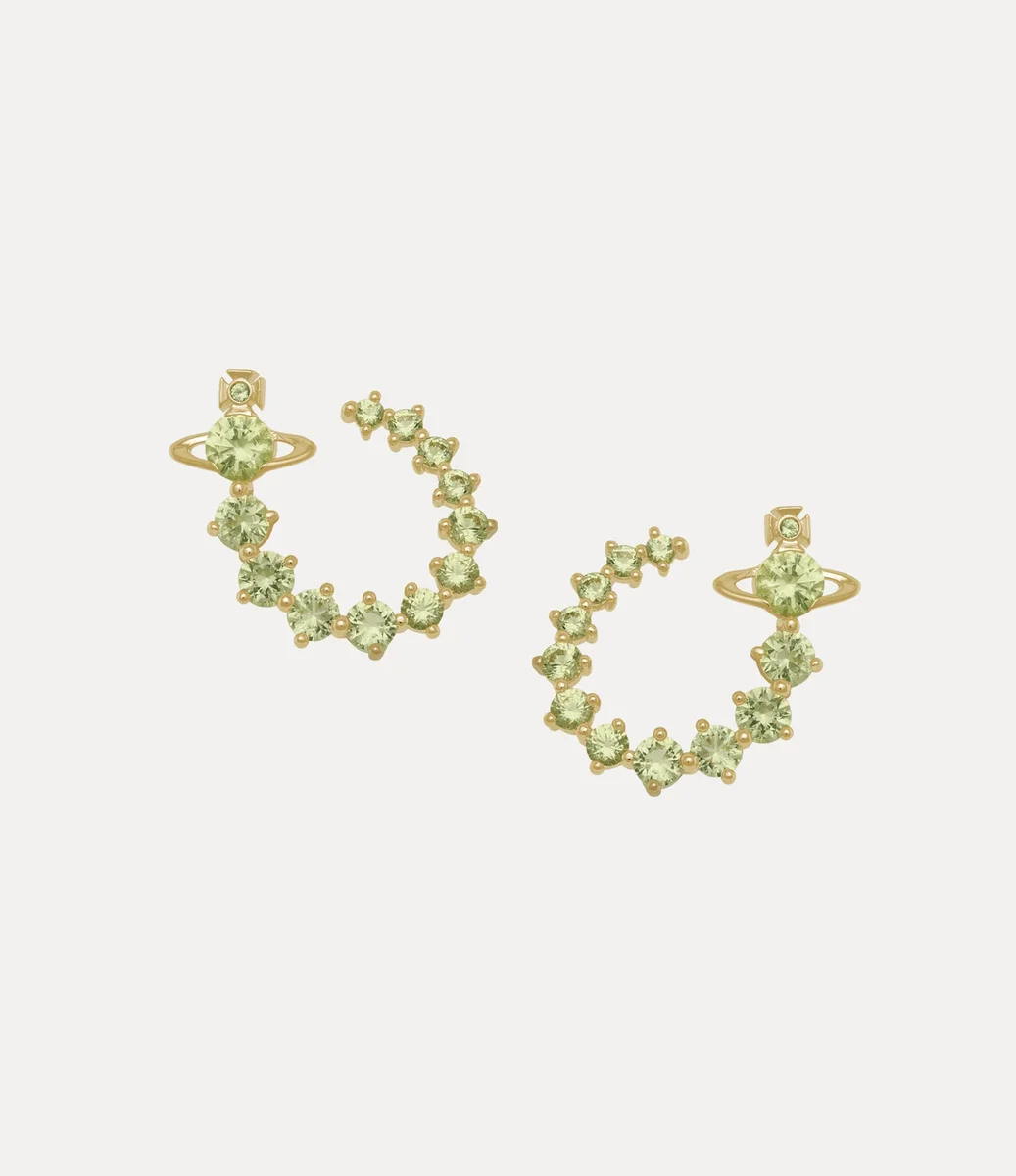 Våra Lydia örhängen är tillverkade i polerad guldplätering och böjer sig mjukt runt örsnibben för att skapa illusionen av en skulptural ring. Designen är prydd med kubiska zirkoner som elegant avtar i storlek och vårt tidlösa orb-emblem – som påminner om Viviennes vision om att ta traditionen in i framtiden.