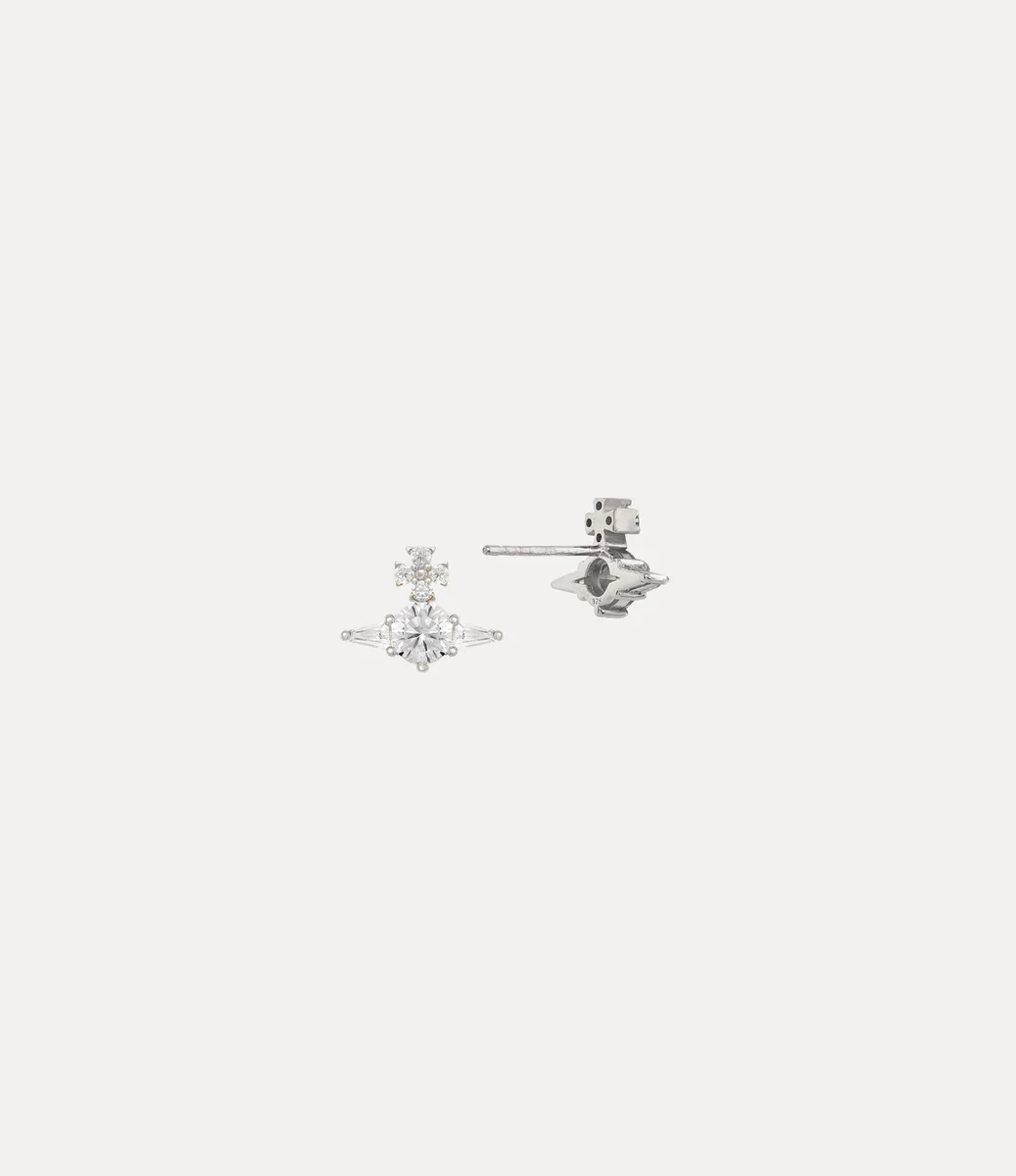 Våra Ofelia-örhängen har en platinafärgad sfärisk silhuett, inspirerad av vårt hus signaturmotiv i form av en sfär. Designen är täckt med glittrande runda och avsmalnande baguettekristaller av kubisk zirkonia och speglar Viviennes vision om att föra traditionen in i framtiden.