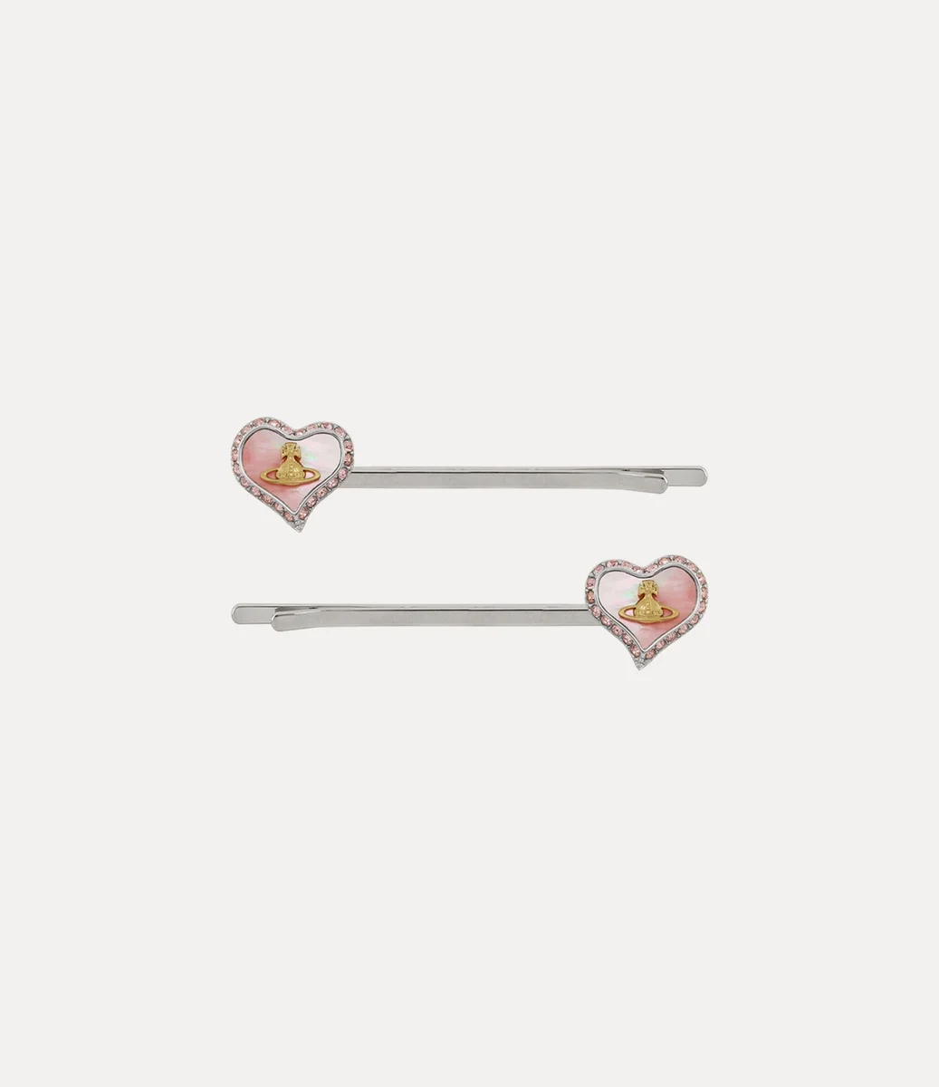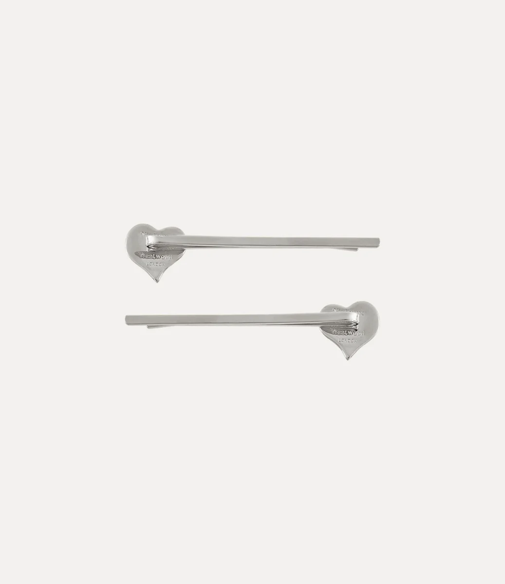 Våra Petra Bobby-hårnålar har en silvertonsilhuett, prydd med ett asymmetriskt hjärtformat motiv, som påminner om Viviennes kärlek till mänskligheten och planeten. Smycket har en kula i mitten, som symboliserar tradition, omgiven av Saturnus himmelska ringar, som symboliserar framtiden.
