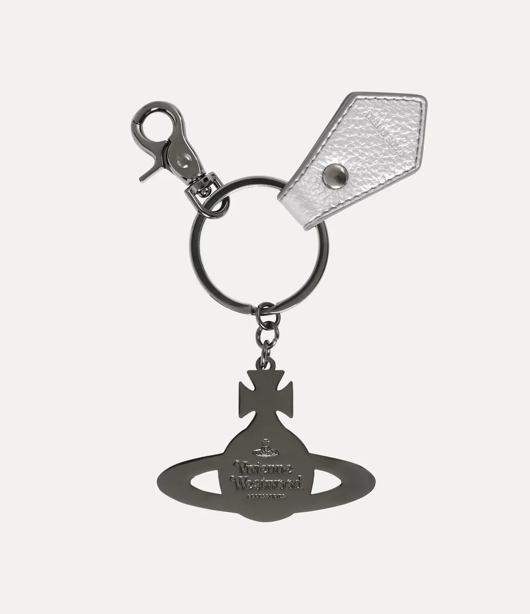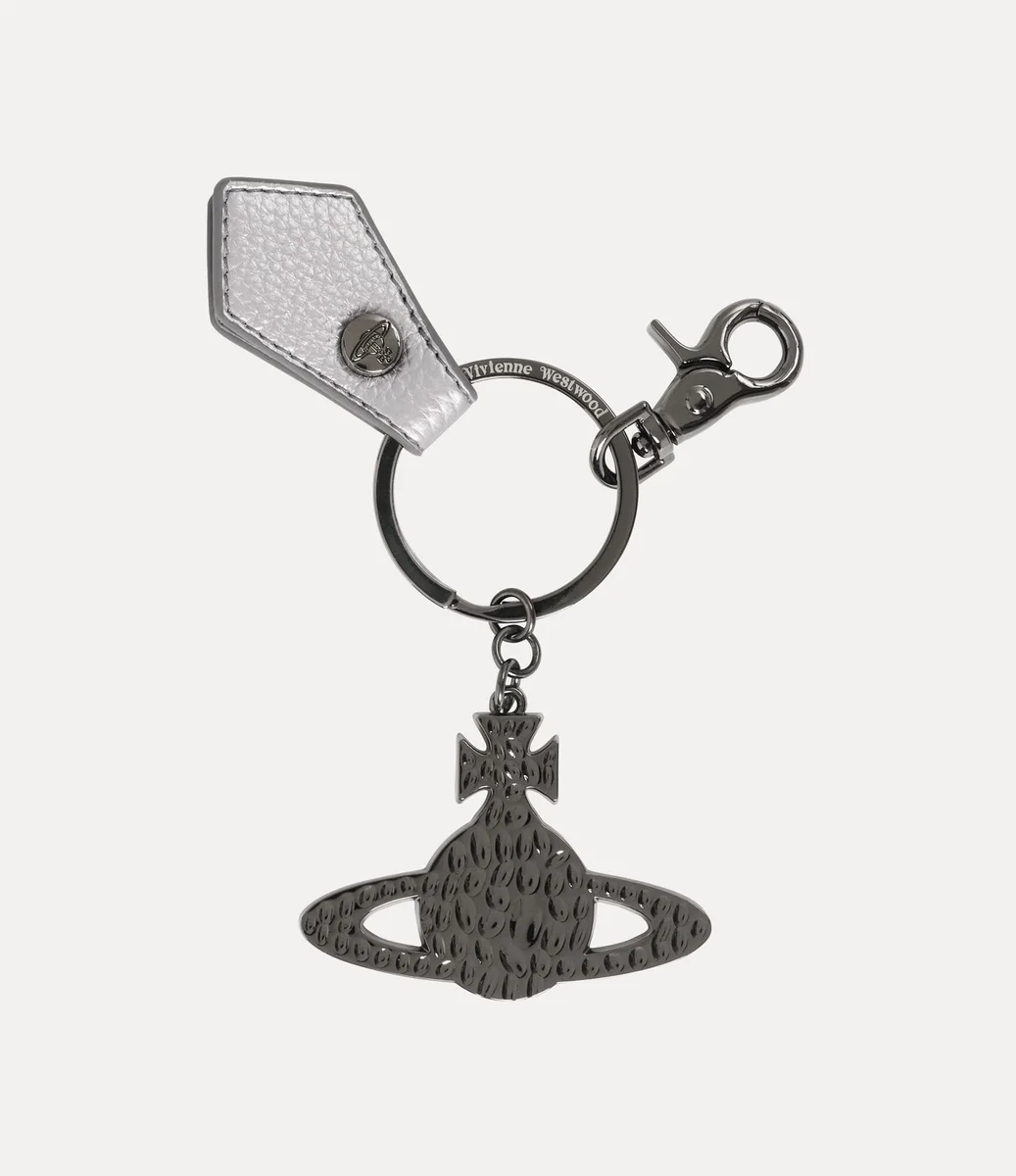 Vår hammarslagna Orb-nyckelring har ett tvådimensionellt orb-motiv med en distinkt hammarslagen struktur, som återspeglar husets etos att länka samman det förflutna med framtiden. Den är avslutad med en flik i PU-läder och accentuerad med pläterade detaljer i gunmetal-ton.
