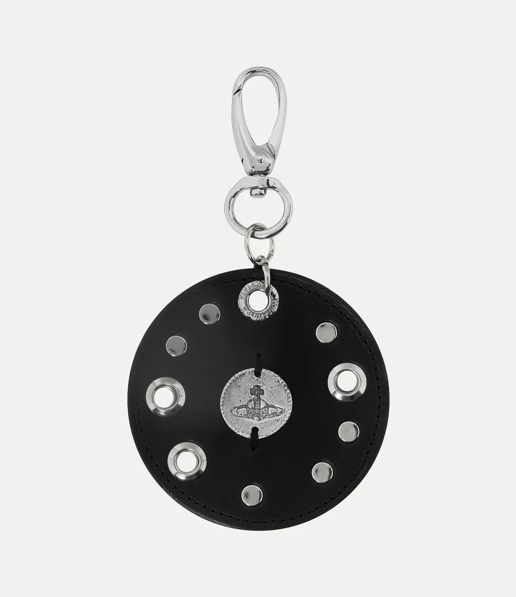Vivienne Westwood Liz Concho nyckelring har en cirkulär silhuett prydd med metallnitar och avslutas med ett handgjort metallklotlogo i mitten.
