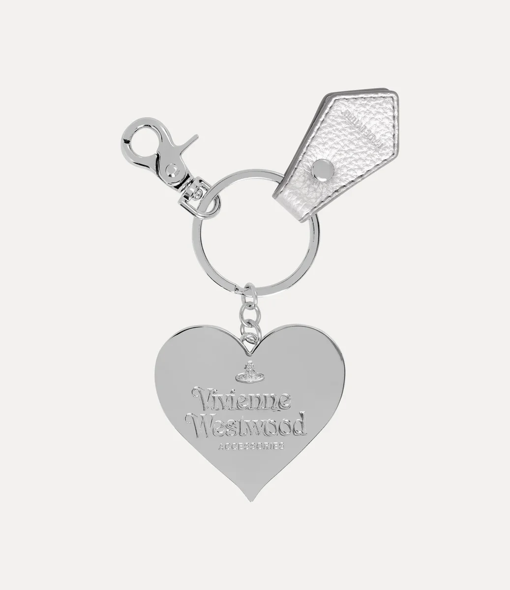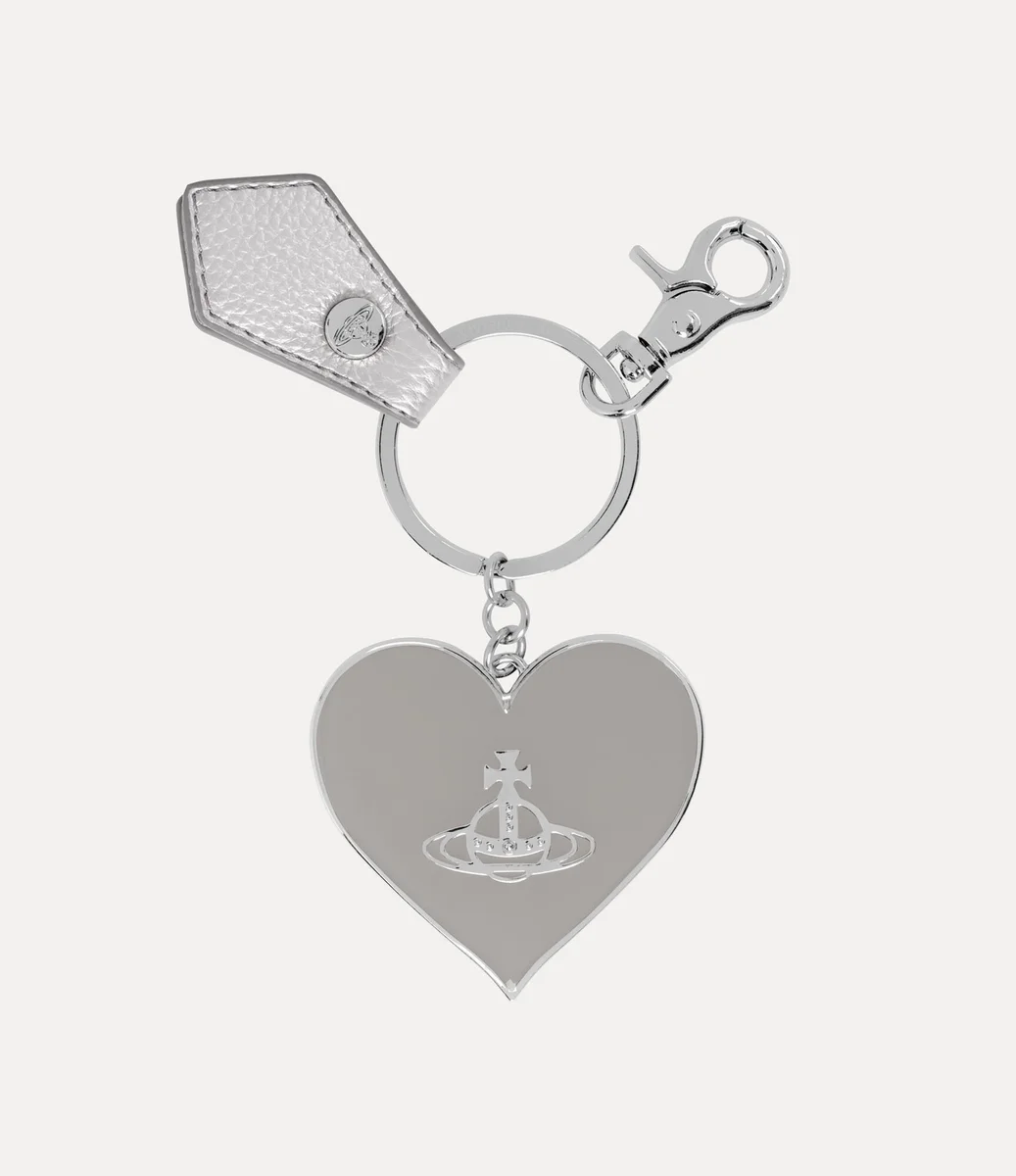 Vår Mirror Heart Orb-nyckelring har en silverfärgad delad ring och en ton-i-ton-flik, kompletterad med ett hängande hjärtmotiv. På baksidan finns inskriptionen ”Vivienne Westwood”, medan framsidan pryds av ”Line orb”-motivet – som påminner om Viviennes vision om att föra traditionen in i framtiden.