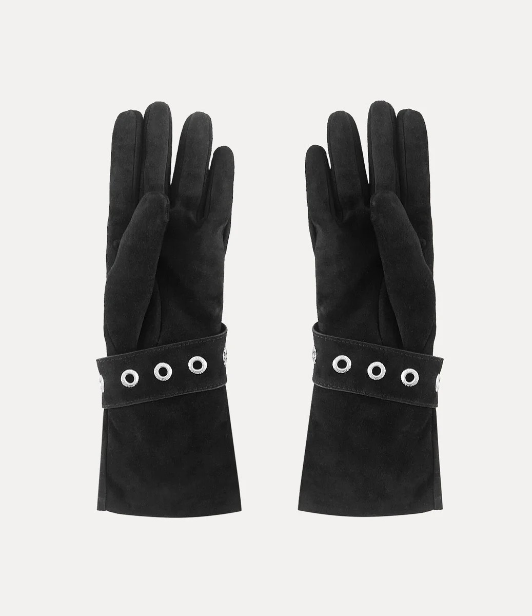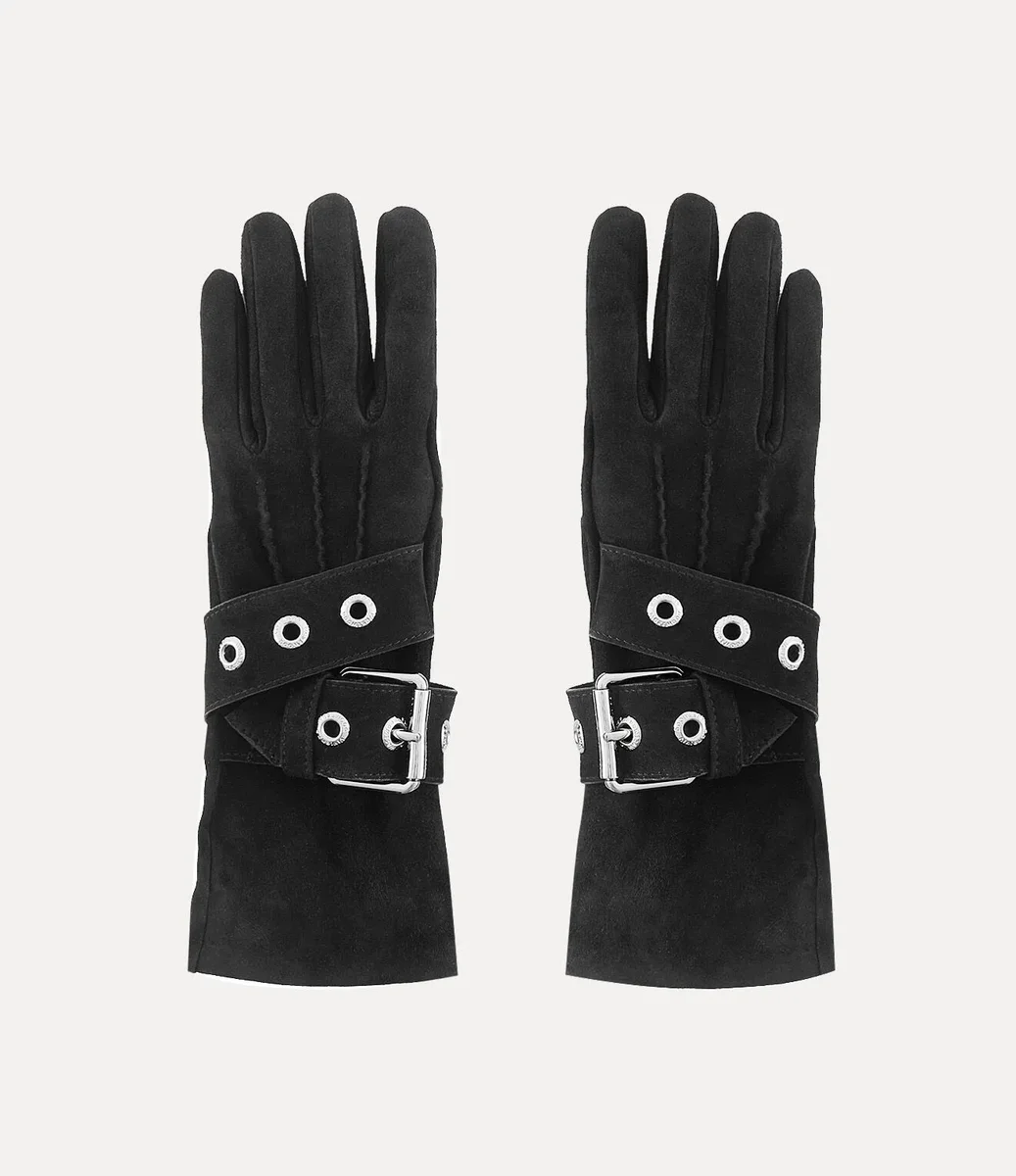 Våra Belt Buckle-handskar är tillverkade av mjukt mocka och har en förlängd manschett som går över handleden. Designen är inspirerad av husets signaturbälte Alex och har en asymmetrisk rem som går diagonalt över varje handske, med graverade silverfärgade detaljer.