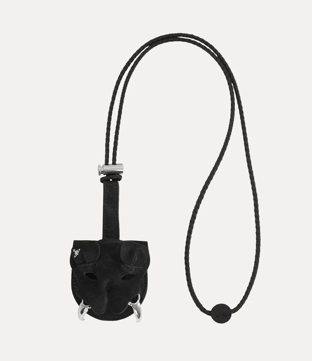Vår charmrem med tigertand återupplivar husets ikoniska ”Tiger”-motiv, som först introducerades i höst-vinterkollektionen 2001 ”Wild Beauty” som en symbol för kraft. Charmen är tillverkad av strukturerat läder med en glansig yta och har detaljer i form av silverfärgade huggtänder och en miniatyrkula på örat.
