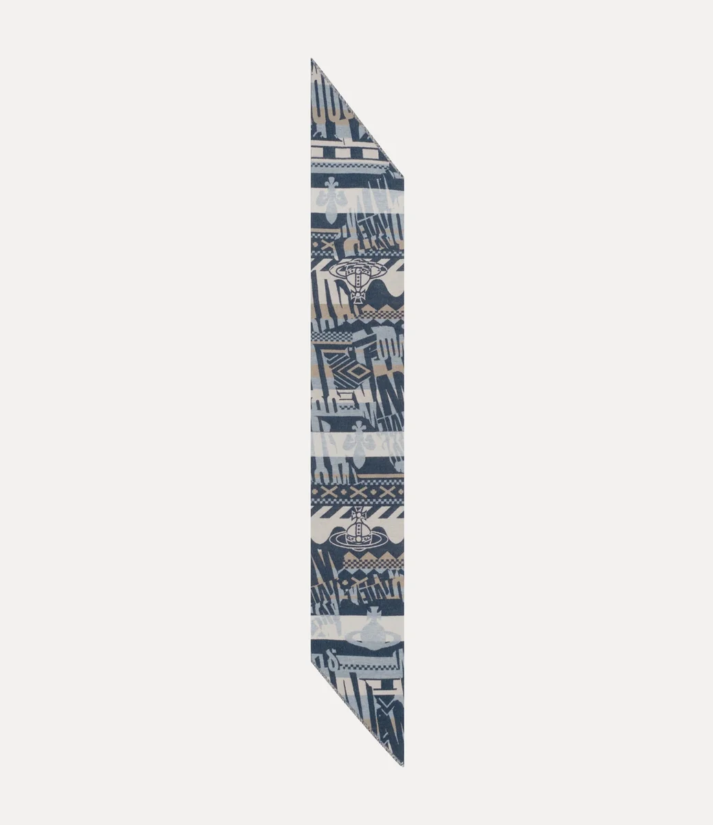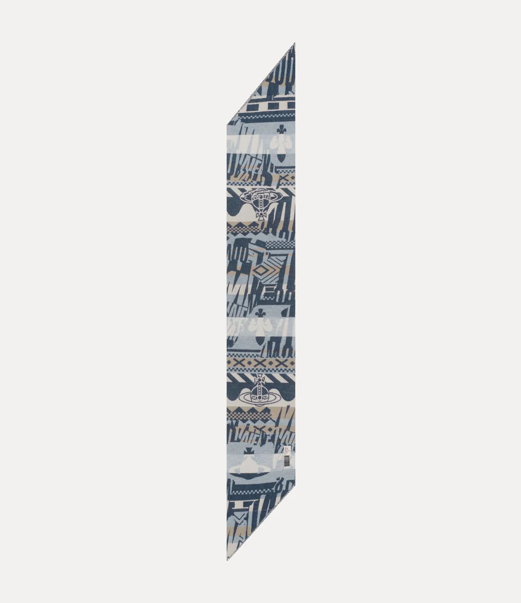 Two Point Scarf har husets signaturdesignsystem ”Two Point”, som skapar en distinkt silhuett med asymmetriska kanter. Den har säsongens Broken Fair Isle-jacquard, med ikoniska husmotiv och subtilt blekta partier där den klassiska ”Vivienne Westwood”-logotypen framträder.