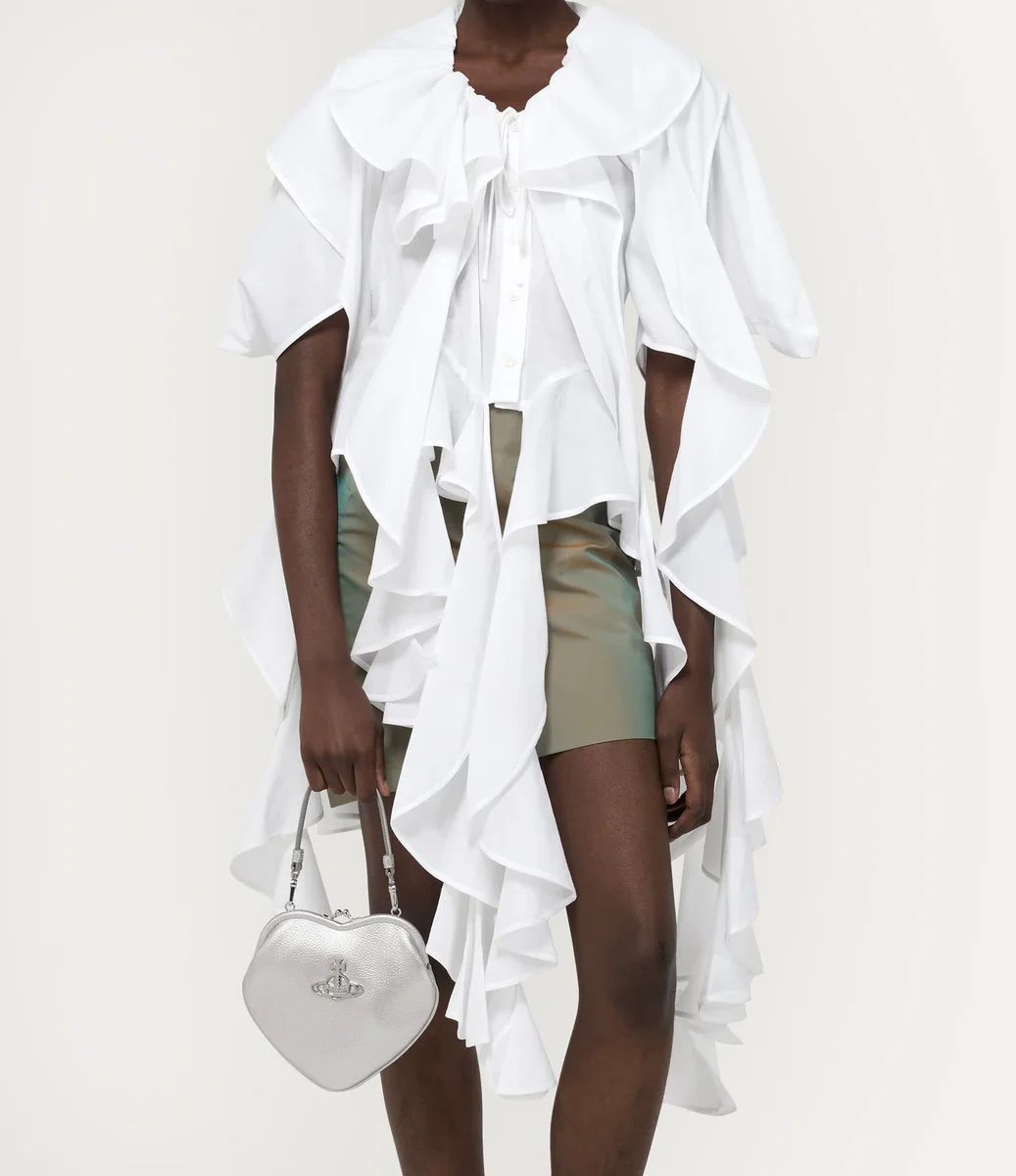 Hjärtformen har blivit ett signum för varumärket och har dykt upp i många kollektioner genom husets historia. Belle Heart Frame-handväskan i PU-läder har en silhuett med präglat mönster och är dekorerad med husets signaturmönster ”Line Orb” på framsidan – som förkroppsligar etoset att länka samman det förflutna med framtiden.