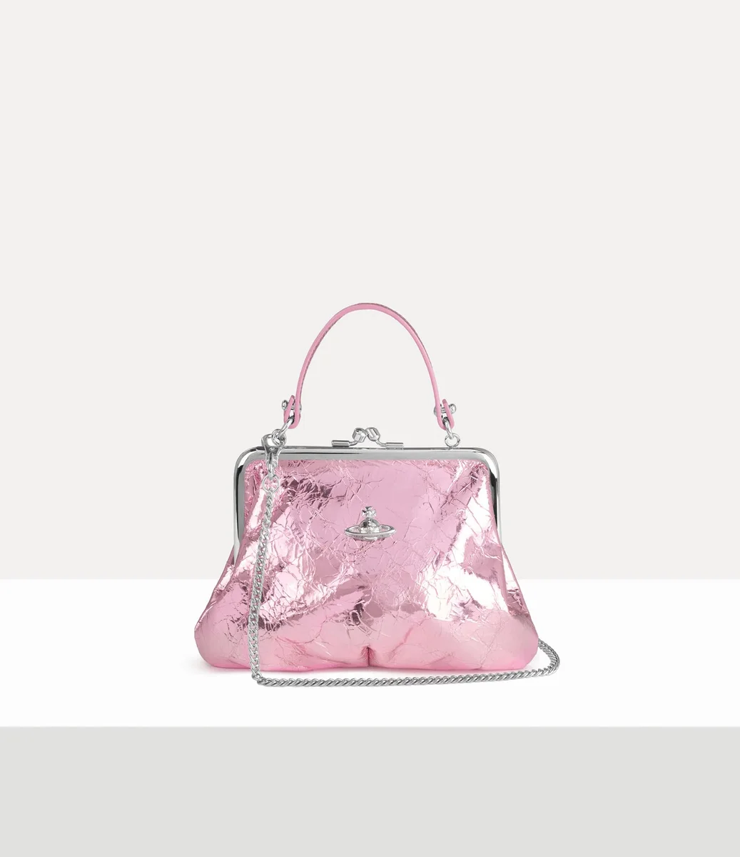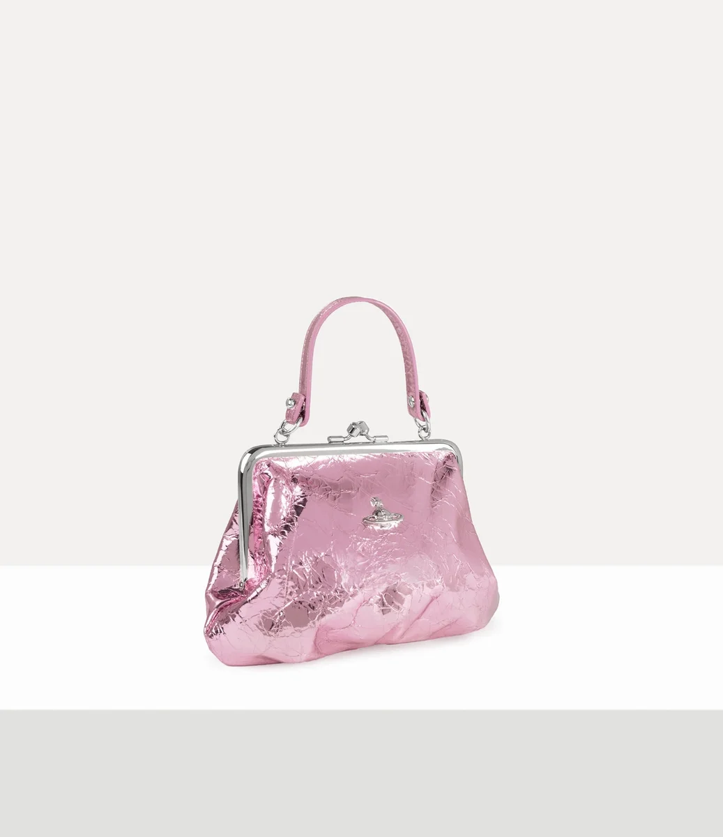 Den här säsongen har vår signaturväska Granny Frame fått en ny design i metalliskt skrynkligt läder, inspirerad av vårt rika arkiv. Med detaljer som en synlig polerad ram och ett kysslås på ovansidan påminner väskan om myntväskor från tidigt 1900-tal.