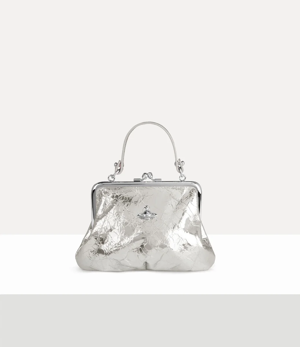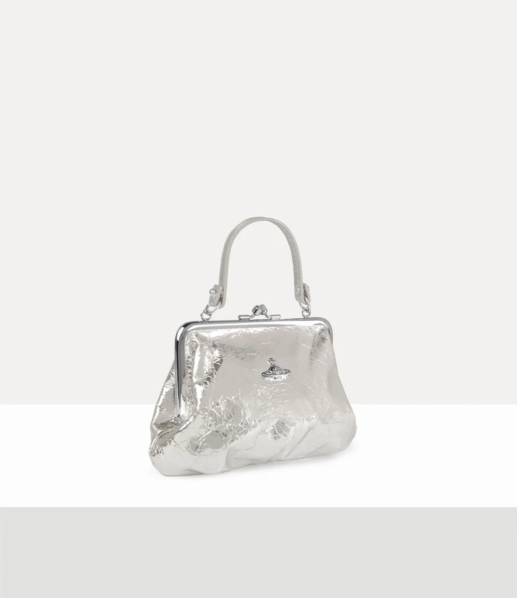 Den här säsongen har vår signaturväska Granny Frame fått en ny design i metalliskt skrynkligt läder, inspirerad av vårt rika arkiv. Med detaljer som en synlig polerad ram och ett kiss-lock-lås på ovansidan påminner väskan om myntväskor från tidigt 1900-tal.